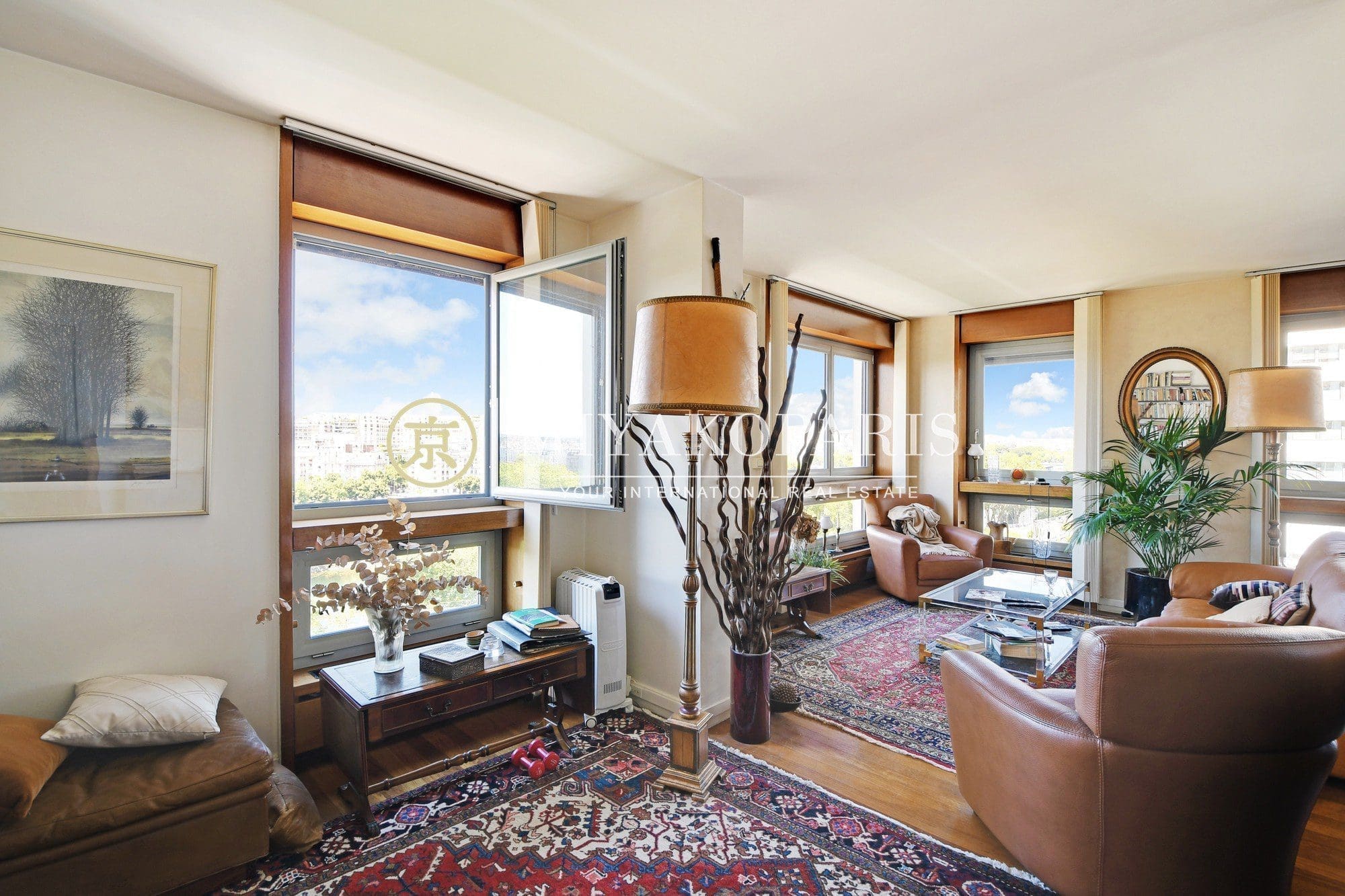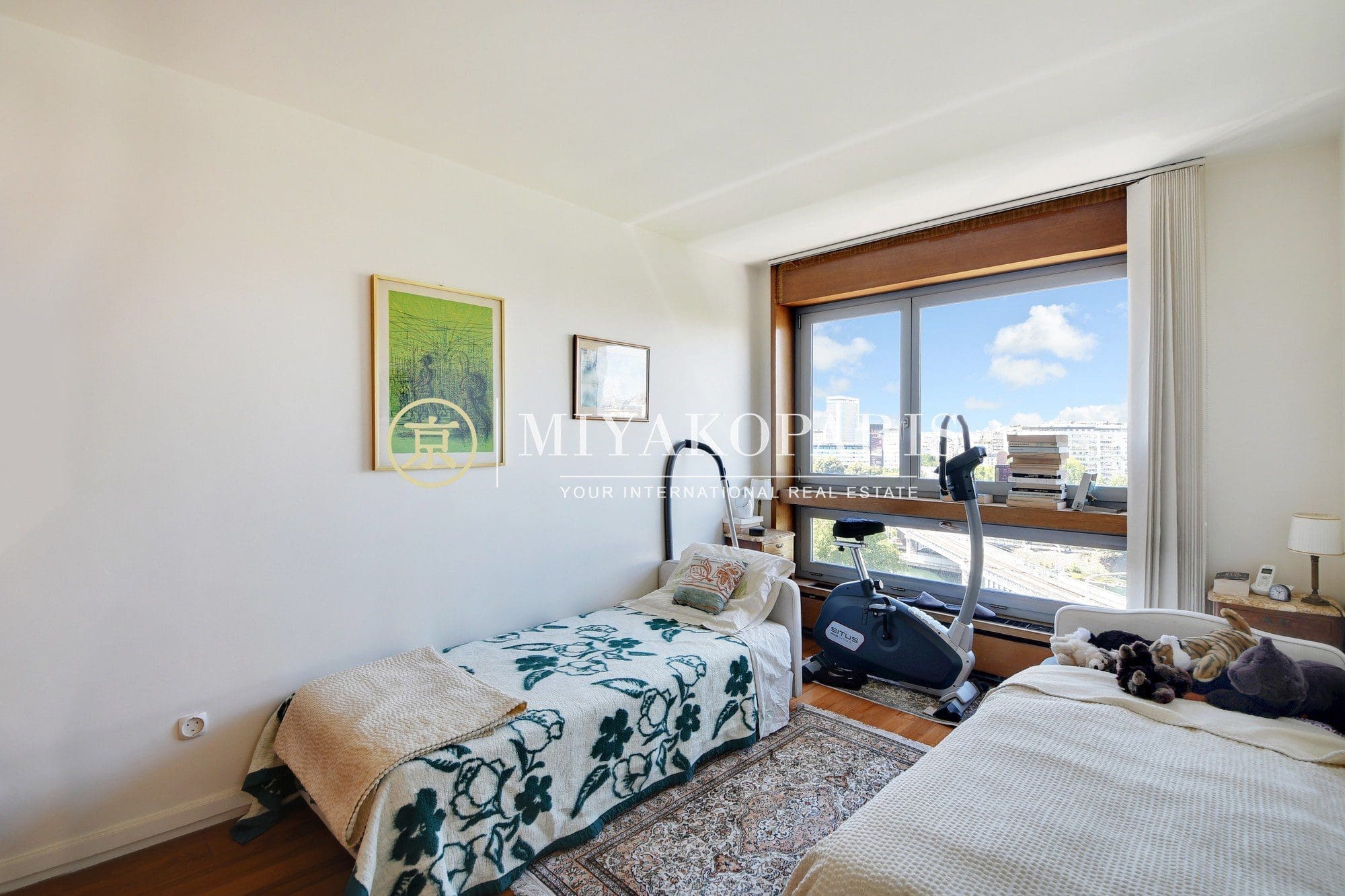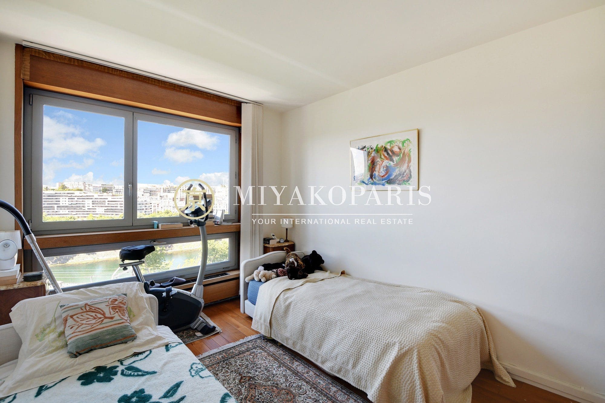 MIYAKOPARIS, L’Agence du Front de Seine ! Paris XVe – Dans un immeuble de bon standing et haute surveillance. Appartement 3/4 pièces de 90,59m² Loi Carrez offrant une vue baignée sur la Seine se compose : entrée, double séjour d’angle (3ème chambre possible), cuisine américaine équipée, 2 chambres, 1 salle de bains, 1 salle de douche, 2 WC séparés. Nombreux rangements. Belles prestations.