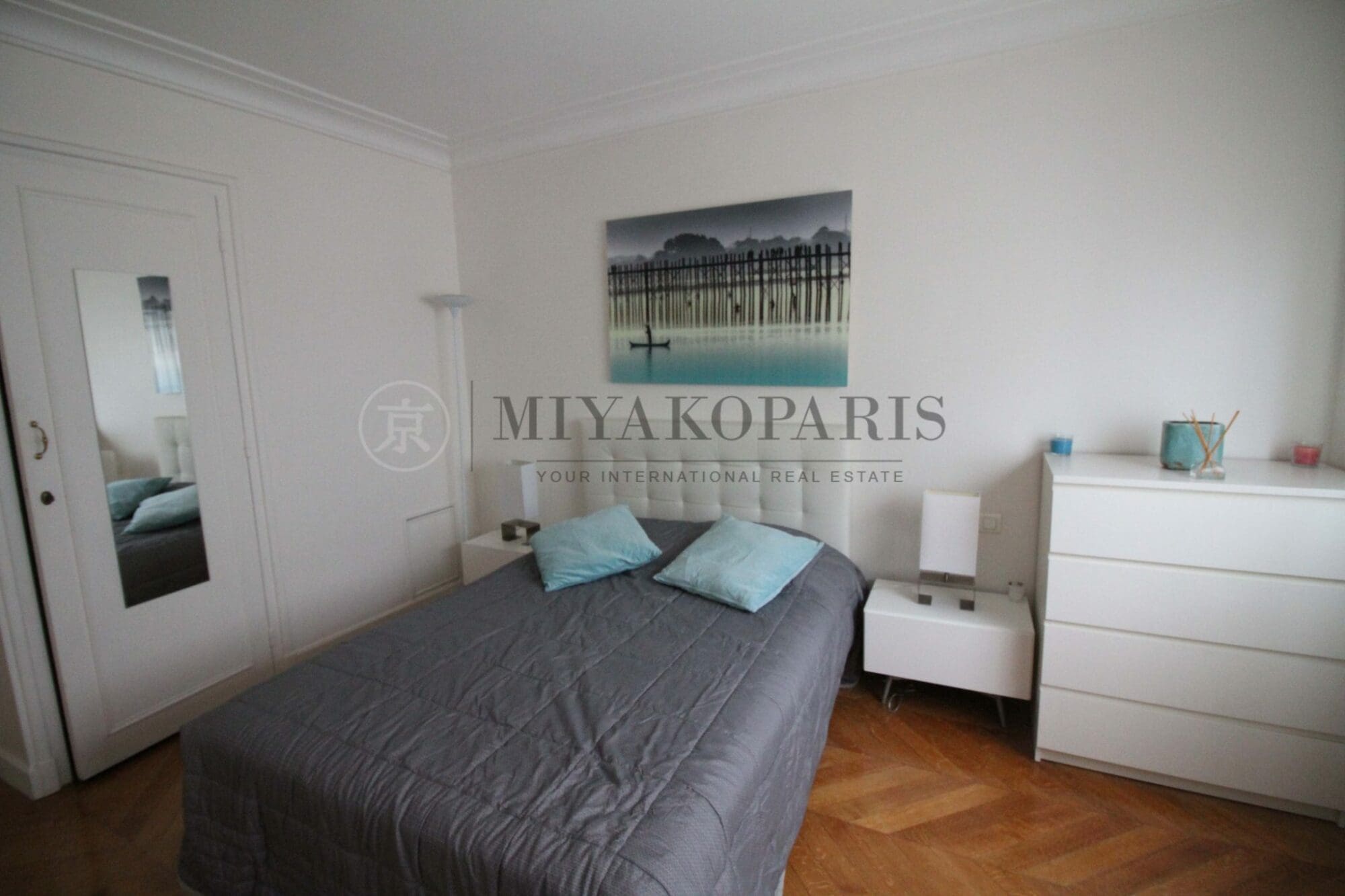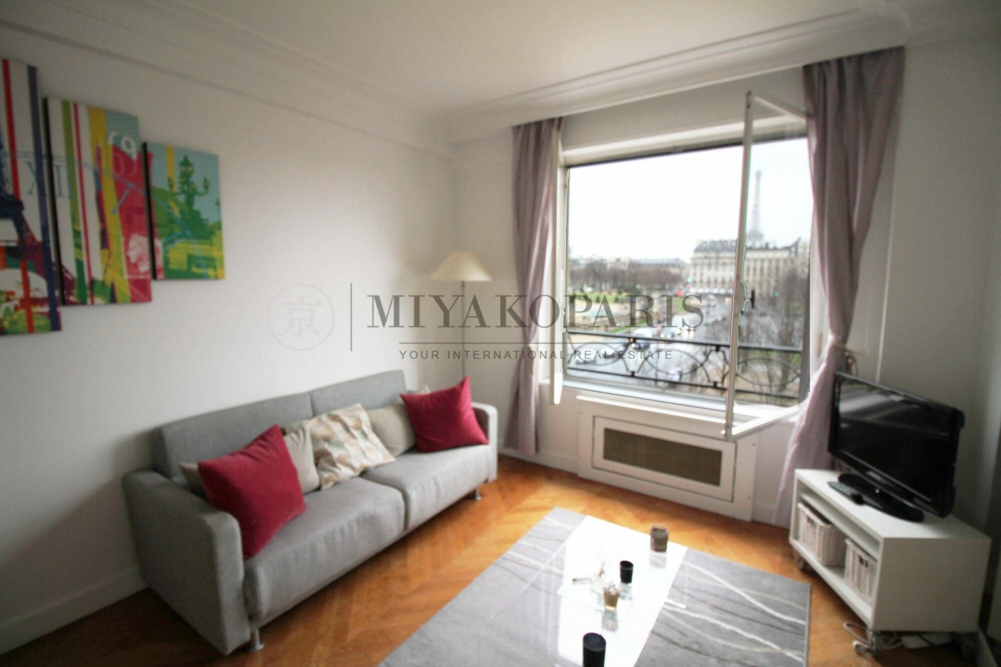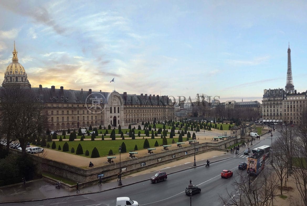 view of Les Invalides and the Eiffel Tower, one bedroom, a bathroom, and a separate toilet.