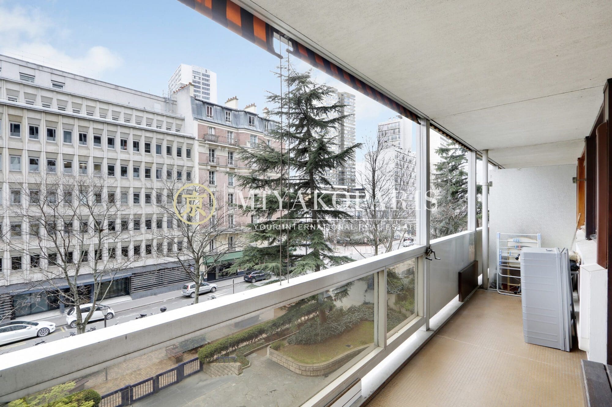 Paris XVe, Appartement 3 pièces offrant une vue sur verdure composé comme suit: Entrée, séjour donnant sur un balcon de 10 m², cuisine indépendante équipée, 2 chambres, 1 salle de douche, WC séparés. Dressing. Nombreux rangements. Parties communes moderne.