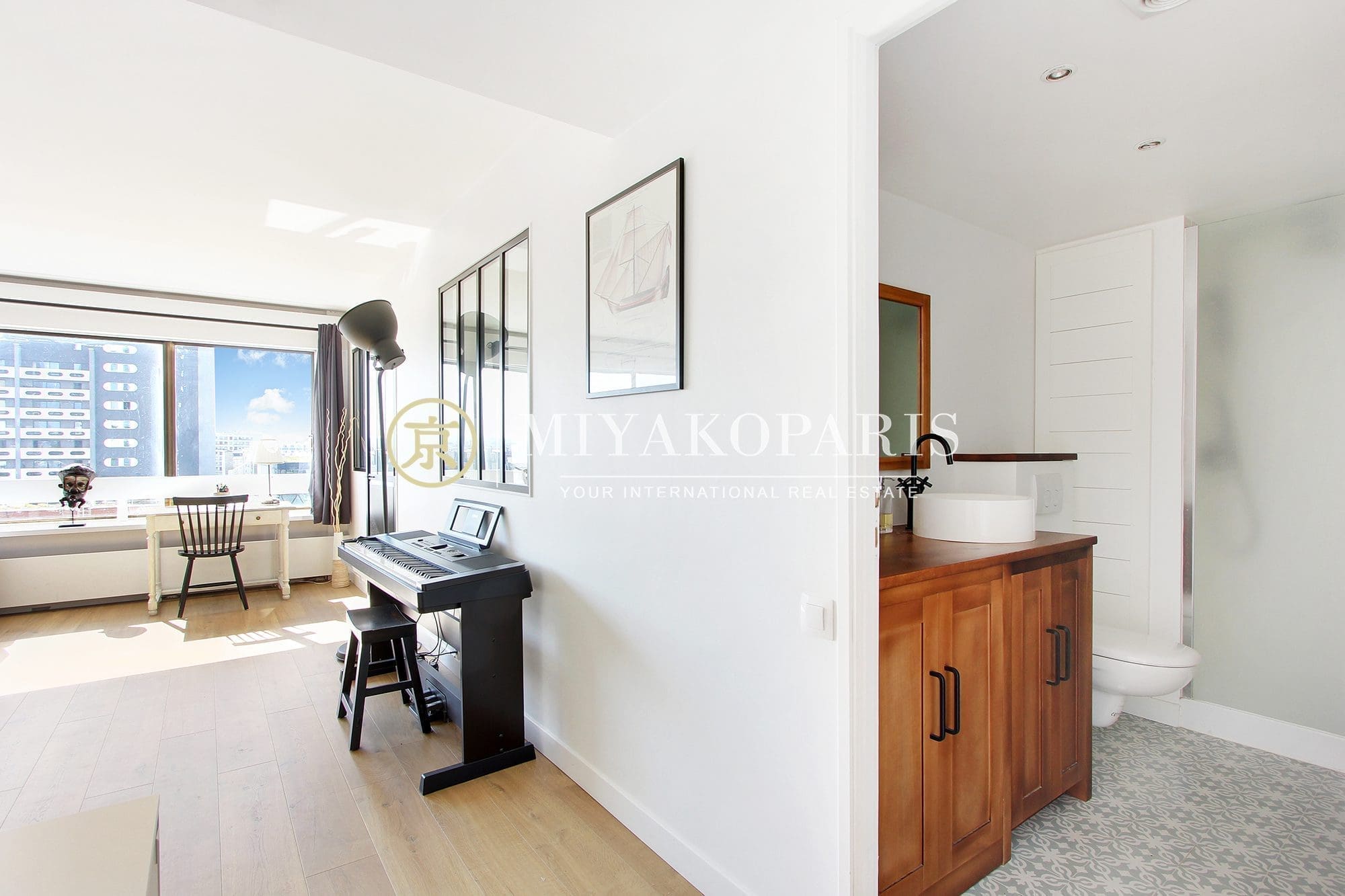 MIYAKOPARIS, L’Agence du Front de Seine ! Paris XVe – Venez découvrir ce 2 pièces baigné de soleil de 54,86m² Loi Carrez refait entièrement à neuf bénéficiant d’une vue dégagée sur Paris composé comme suit : entrée avec dressing, séjour, 1 chambre, cuisine américaine aménagée et équipée, 1 salle d’eau avec douche à l’italienne et WC. Ravalement façade payé et achevé.