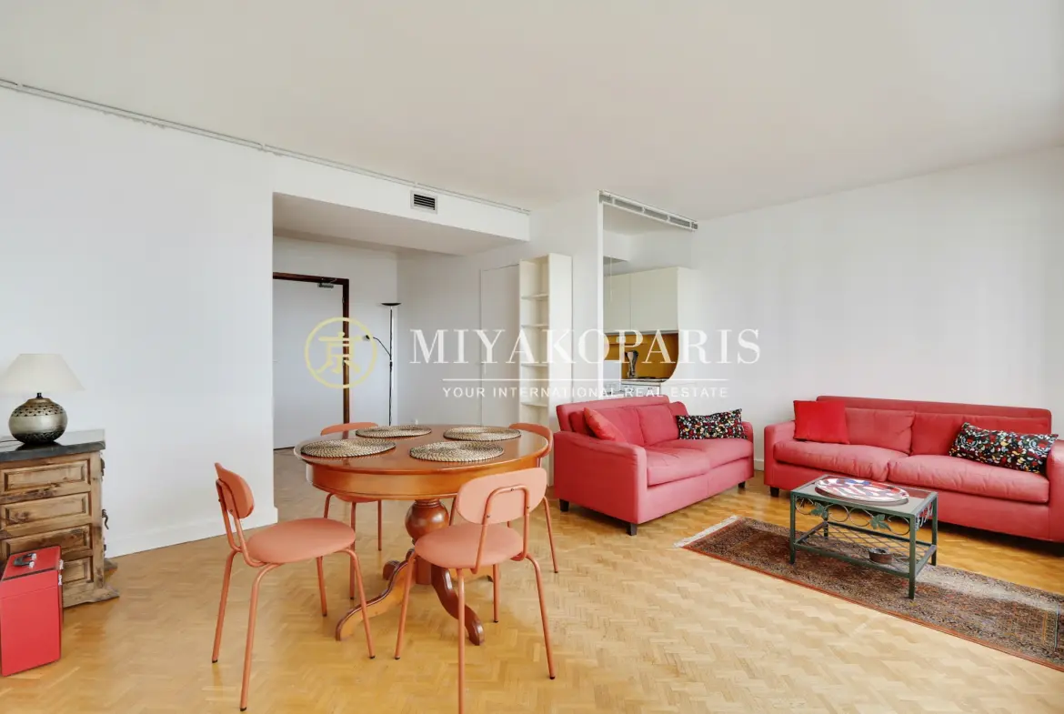 Ce bel appartement 2 pièces de 53,25 m² Loi Carrez bénéficie d’une vue dégagée sur la Seine et d’une luminosité exceptionnelle.