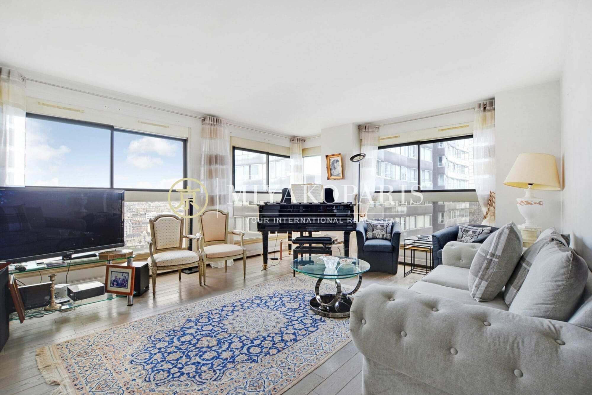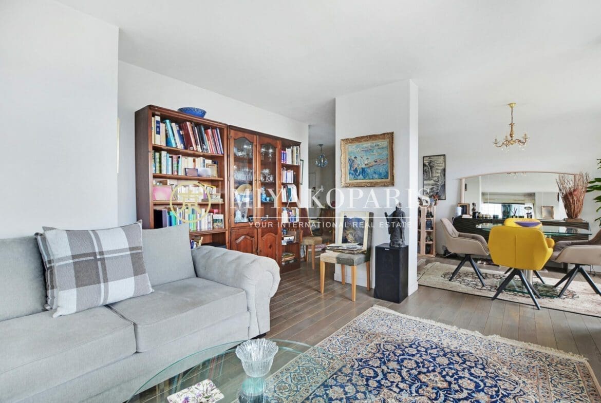 Situé en étage élevé d’un immeuble de standing, ce superbe appartement d’angle de 113,84 m² Loi Carrez offre une vue panoramique et imprenable sur la Seine.