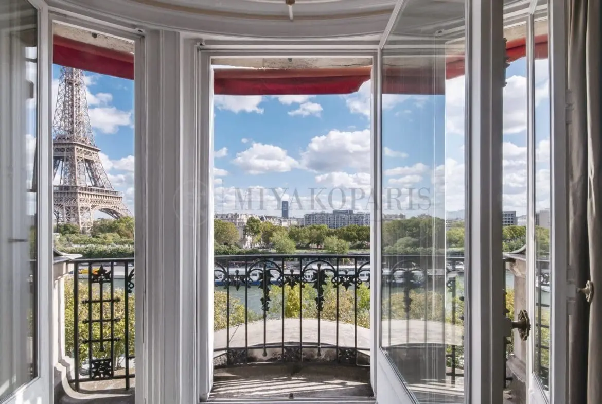 Paris XVIe- Dans un élégant immeuble en pierre de taille, au septième et huitième étage avec ascenseur, appartement de réception de 215.14 m2 avec d’exceptionnelles vues dégagées sur la Tour Eiffel et la Seine. Il se compose d’une galerie d’entrée, une salle à manger, une cuisine indépendante, un vaste salon, un bureau, 4 chambres et 3 salles de bains. L’une des chambres est accessible par un escalier intérieur. Rare.