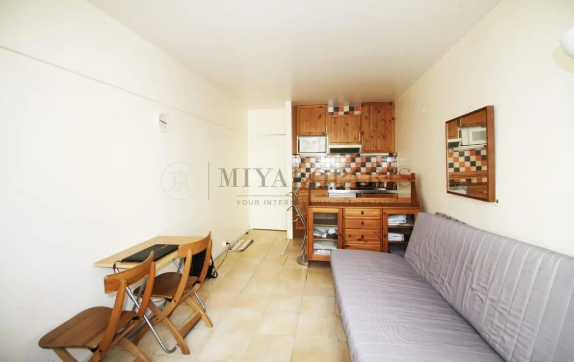 Paris XV – Ce lumineux studio se compose d’une entrée, salle de bains avec WC et lave linge, cuisine américaine et pièce principale .