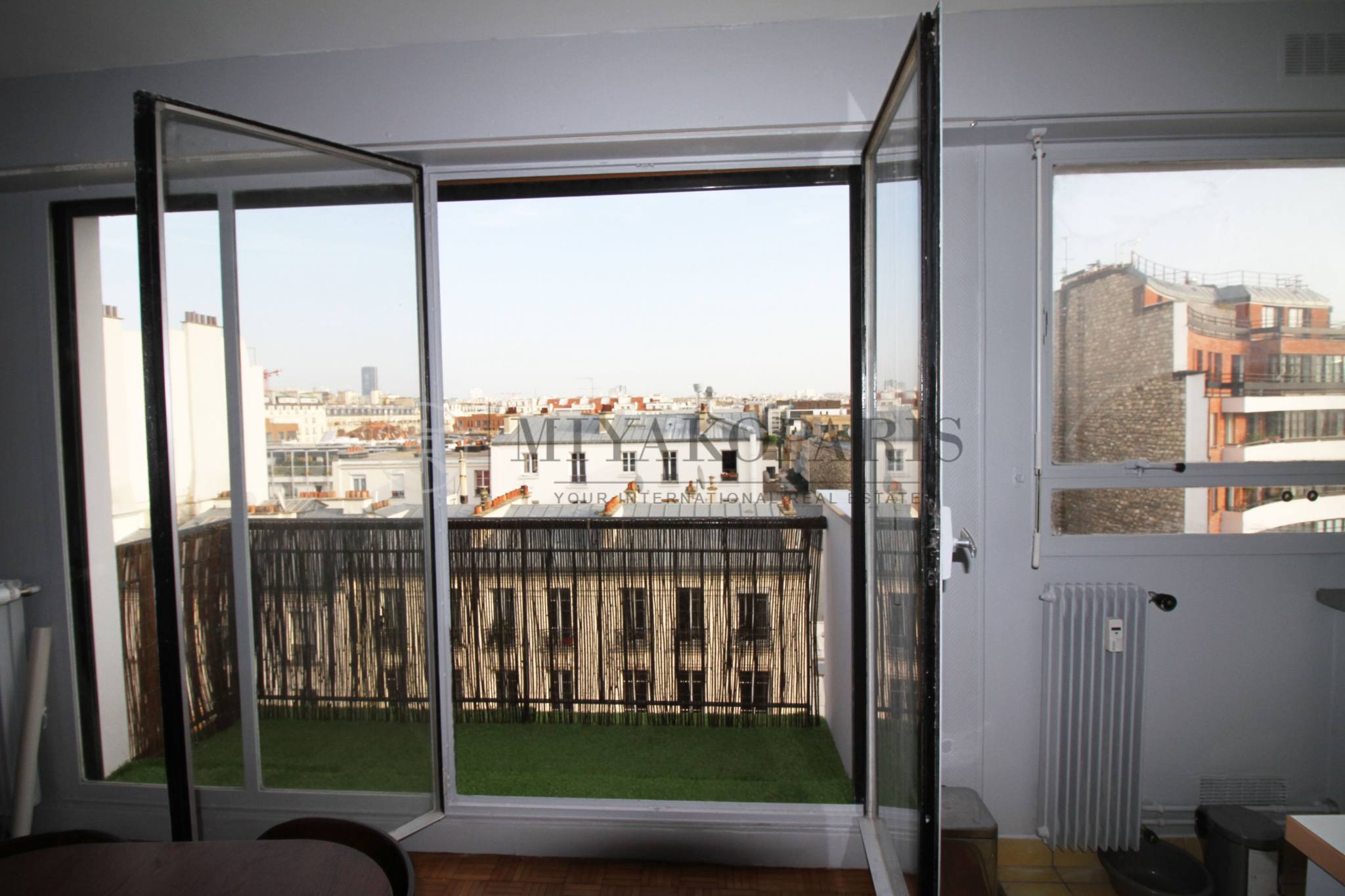 Paris XVe – Ce studio refait à neuf se compose d’une entrée avec placards, salle de douche avec WC, pièce principale , cuisine américaine, balcon rare dans le quartier donnant sur les toits de Paris .