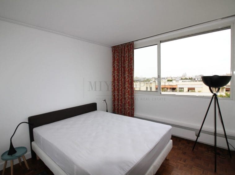 Paris XIVe- Ce lumineux appartement bénéficiant d’une vue dégagée sur Paris, se compose: entrée avec placards, salon, cuisine séparée, salle de douche avec WC, 1 chambre.