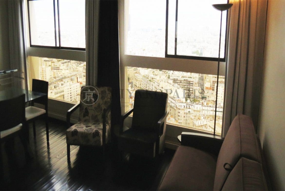 Paris XV– Front de Seine, splendide appartement refait entièrement à neuf se compose : d’une entrée, salon avec une vue exceptionnel sur Paris, 1 chambre, salle de bains avec WC, WC séparé, cuisine indépendante avec tous les équipements neufs.