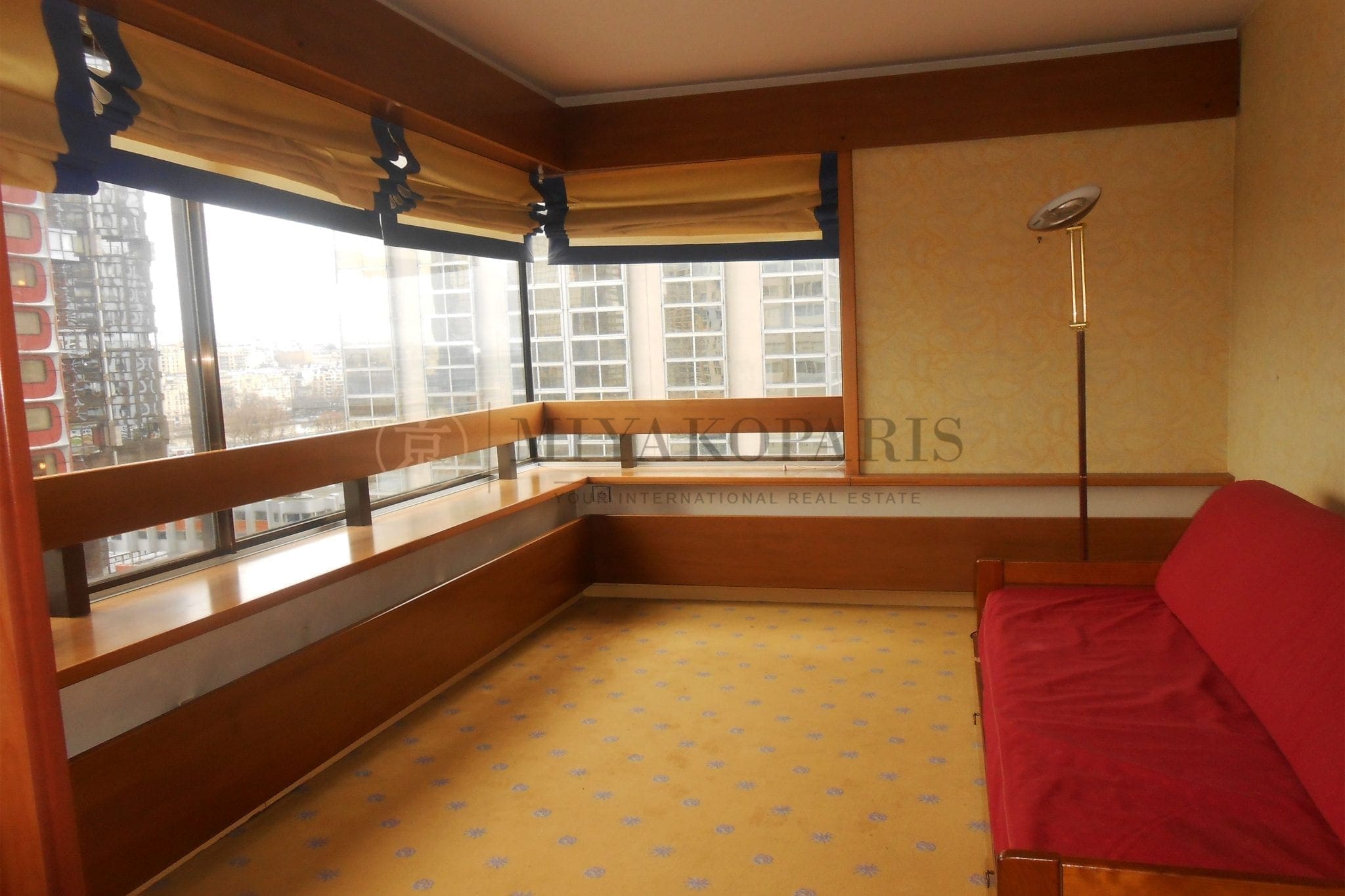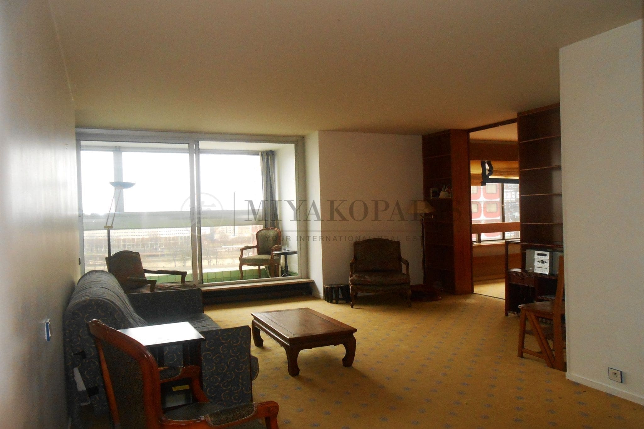Parix XV-Front de Seine, l’appartement avec une vue dégagée sur la Seine se compose d’une entrée avec placards, salon, balcon fermé, cuisine indépendante(possiblité américaine), 2 chambres, salle de bains avec WC, WC séparé.