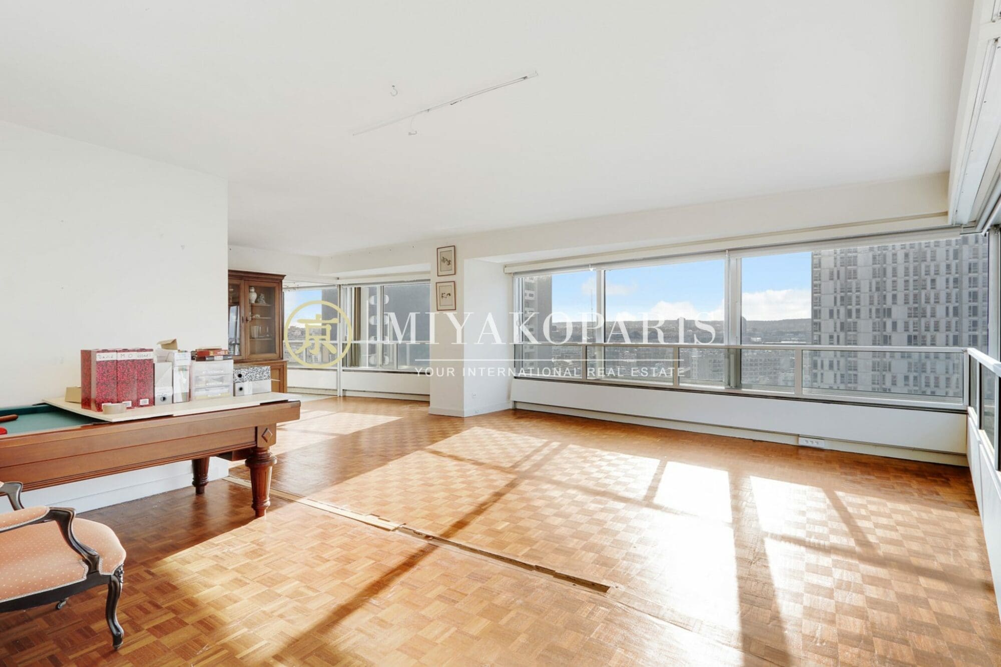 Paris XVe, Front de Seine, Beaugrenelle. Appartement d’angle en étage élevé d’une résidence de bon standing et haute surveillance se compose : entrée, spacieux séjour d’angle (Possibilité 3ème chambre), cuisine indépendante équipée (US possible), 2 chambres, 1 salle de bains avec WC, 1 salle de douche. Nombreux rangements. Rafraîchissement à prévoir.