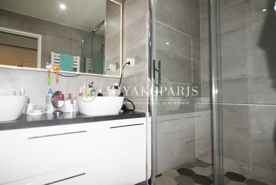 Paris XV – Cet appartement traversant et lumineux se compose d’une entrée, d’un salon avec balcon de 9m2, d’une cuisine américaine, 2 chambres, d’une salle de bains avec douche et baignoire et WC séparés.
