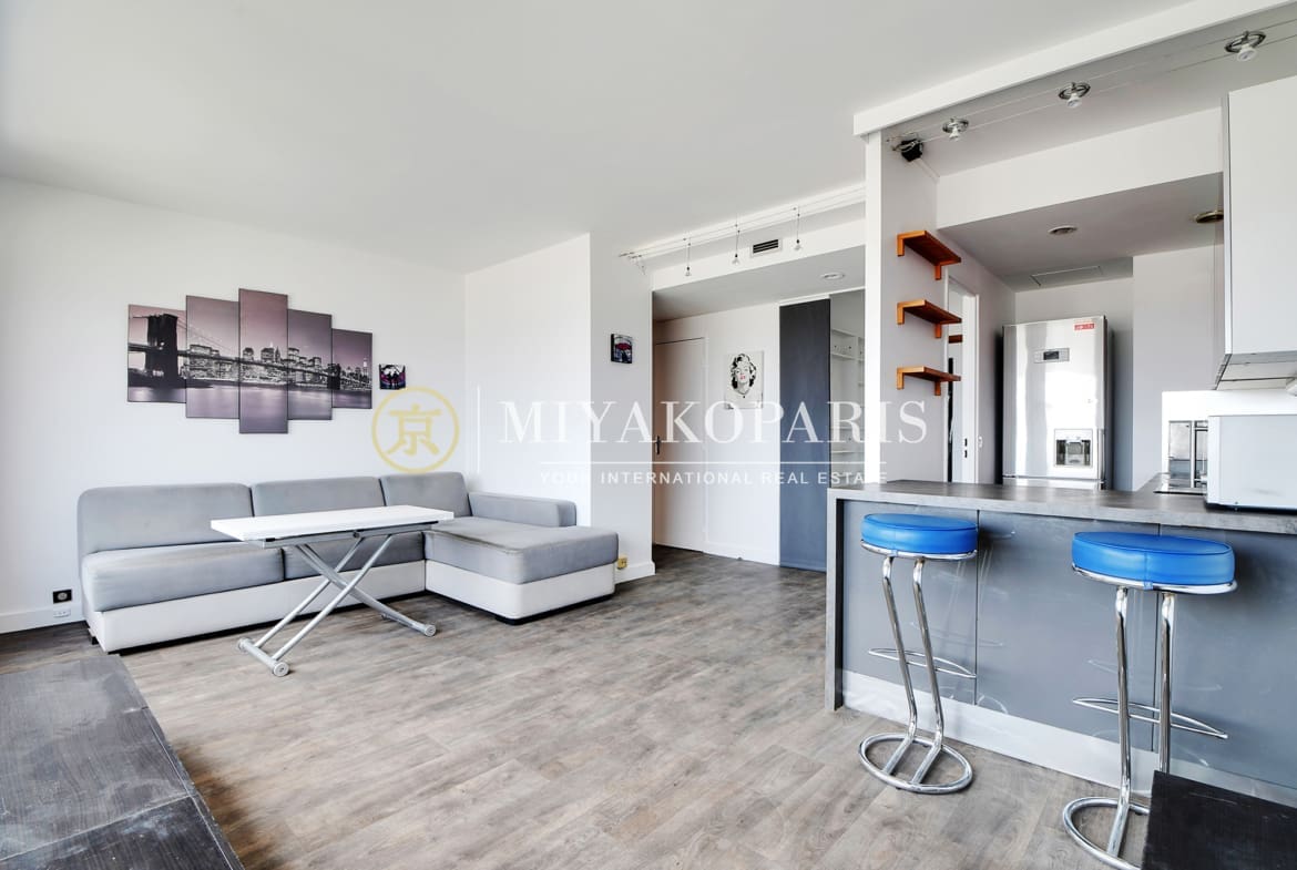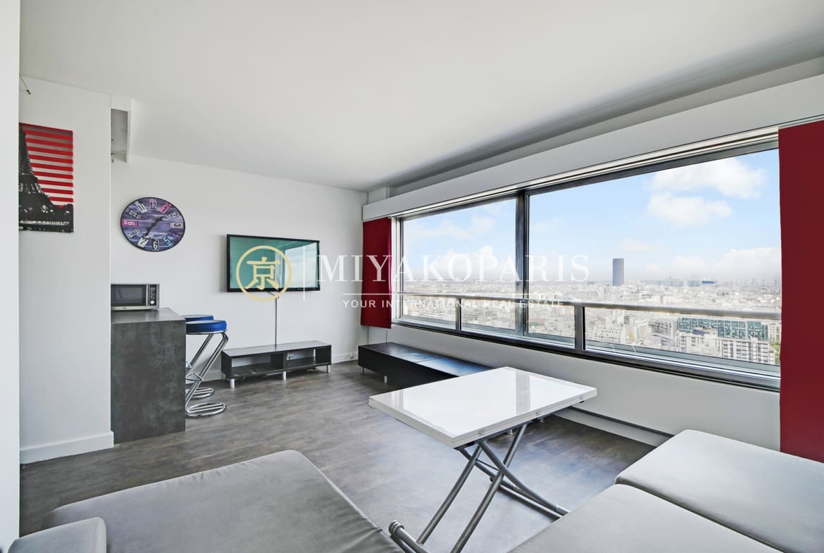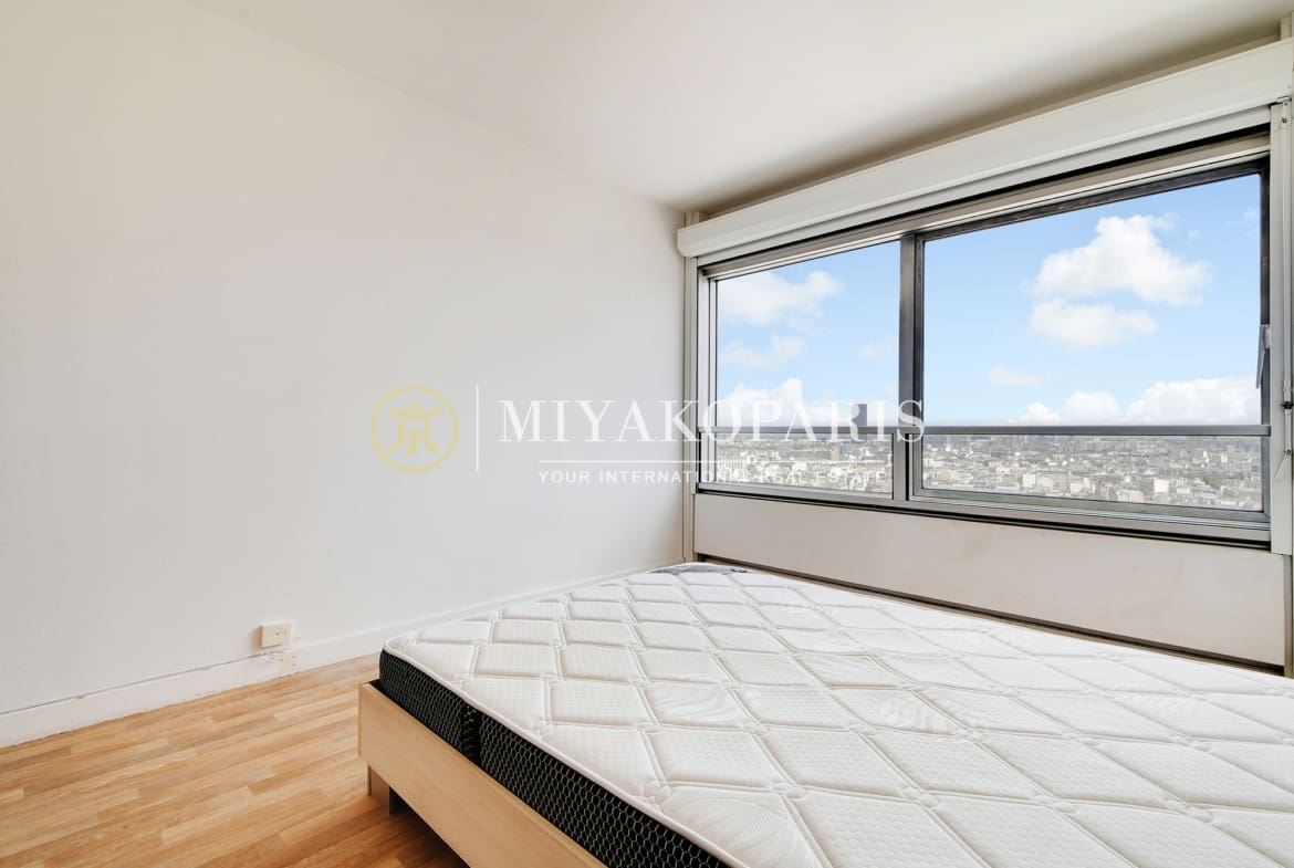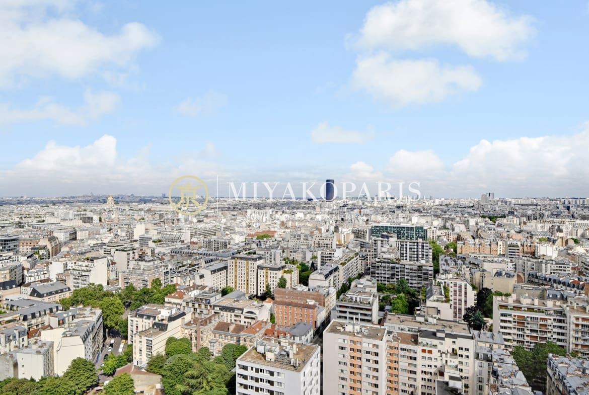 VUE EN HAUTEUR – Exclusivité – Paris XVe – En étage élevé offrant une vue panoramique sur Paris, ce 2 pièces baigné de lumière naturelle se compose : entrée, beau séjour, cuisine séparée, 1 chambre, 1 salle de bains , WC séparé. Lumineux & Calme absolu.
