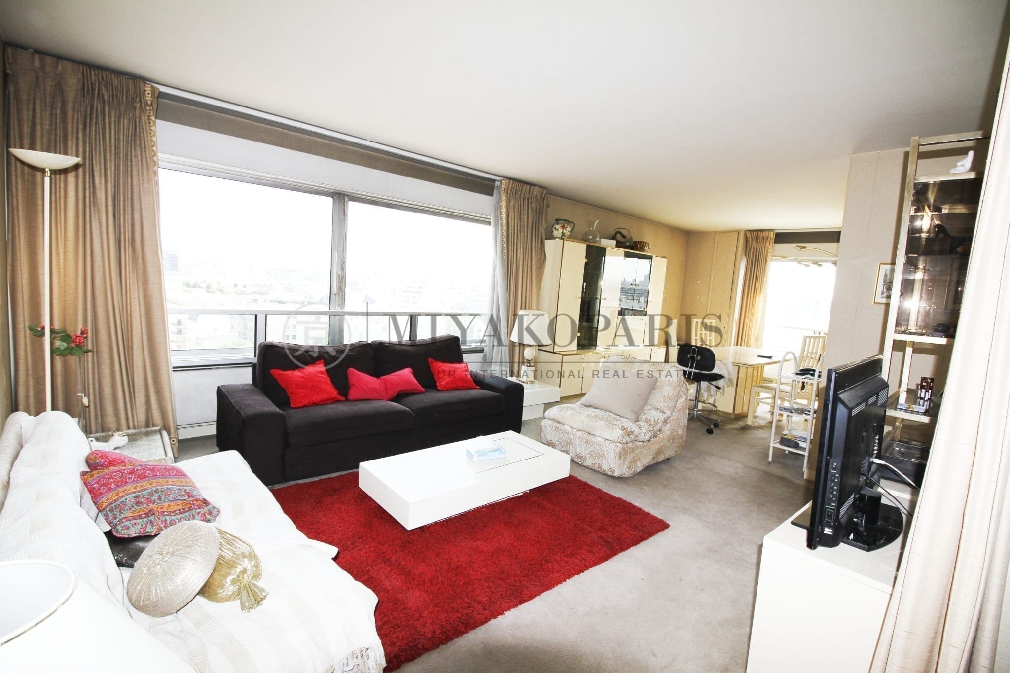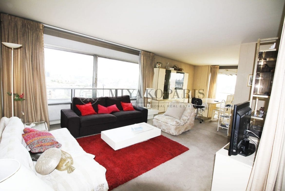 Paris XV- Appartement 3/4 pièces exposé Sud/Est se compose: Entrée, double séjour vue dégagée, cuisine indépendante (possibilité US), 2 chambres (possibilité 3ème), salle de bains avec WC, WC séparé, nombreux rangements. * Toutes les pièces donnent sur Paris et ses toits.