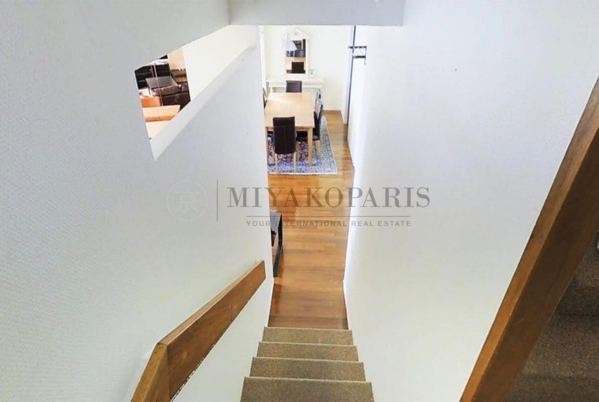 Paris XV – Front de Seine. Dans un immeuble de bon standing et haute surveillance, étage élevé. Duplex très clair, avec une vue dominante sur Paris et sur la Seine composé : entrée, double séjour, cuisine indépendante (Possibilité US),  WC séparé.