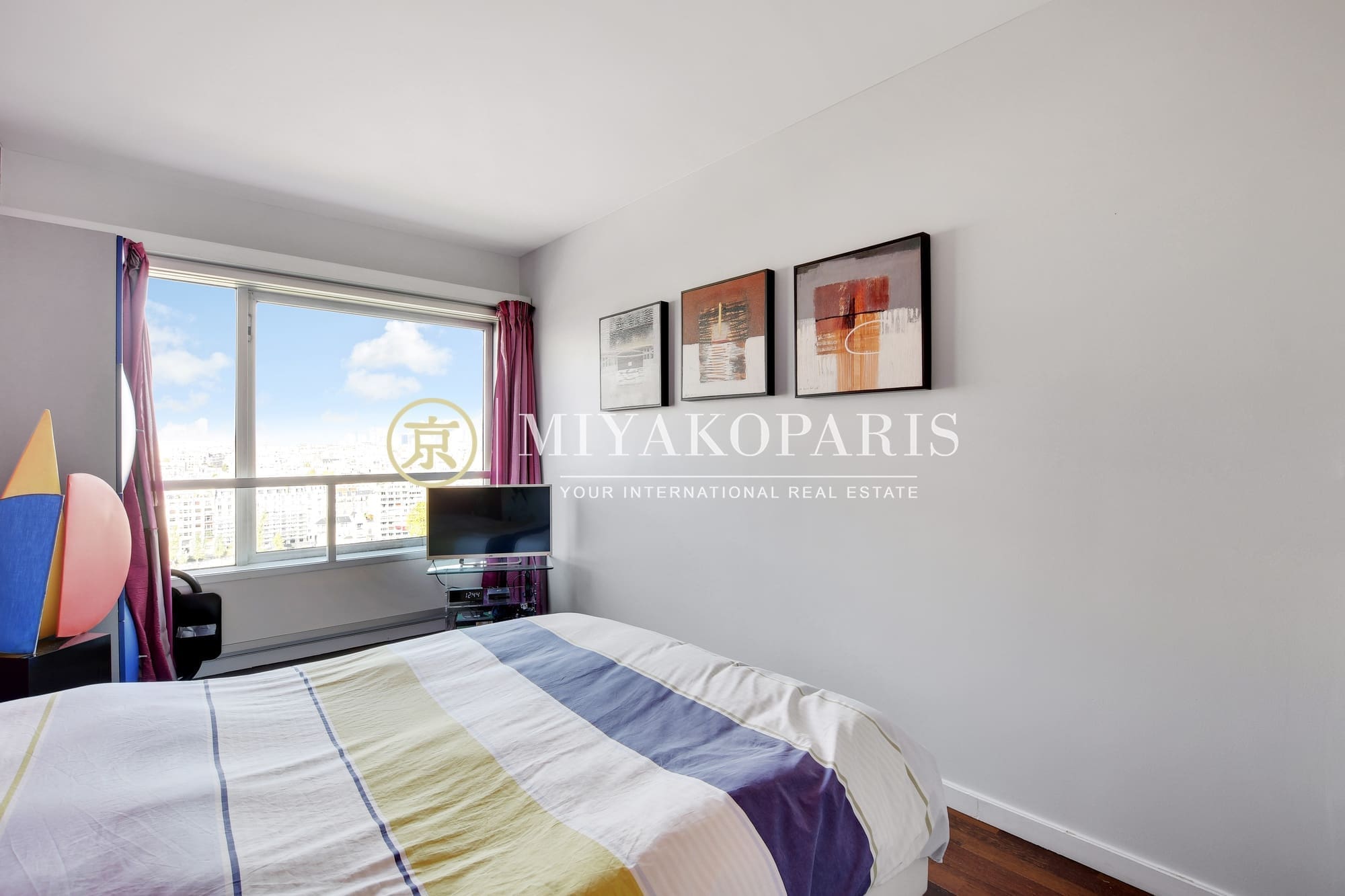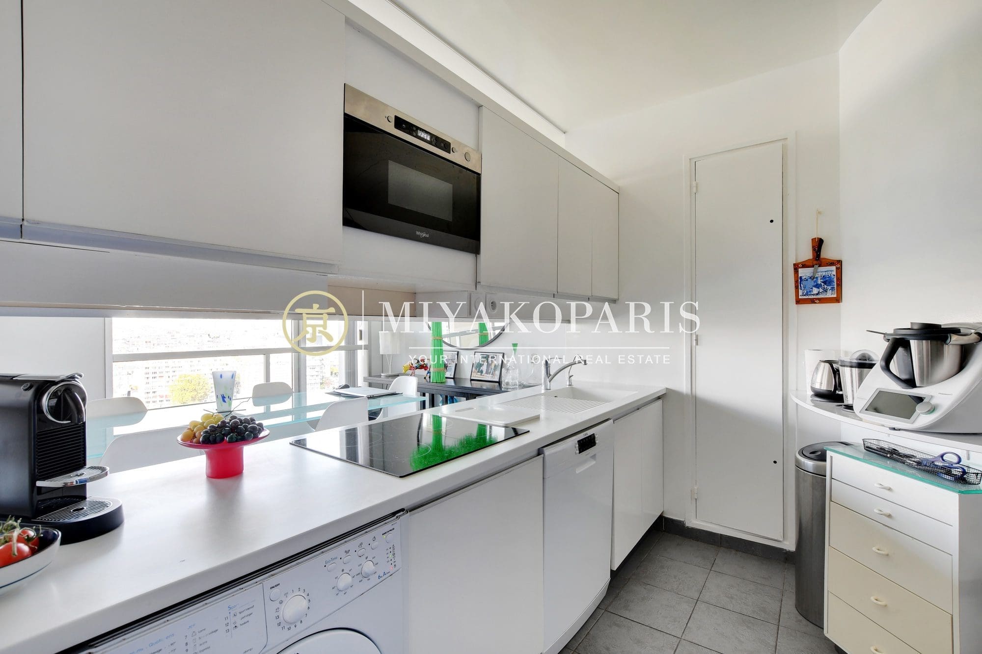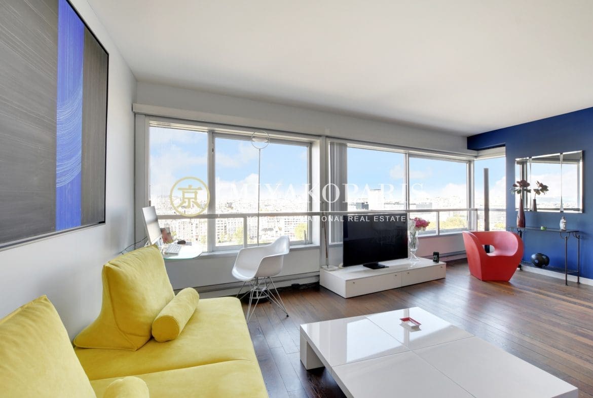 VUE PANORAMIQUE SEINE – COUP DE CŒUR ASSURÉ – Paris XVe, Front de Seine. Appartement 3 pièces de 74.82m² Loi Carrez offrant une vue en hauteur et panoramique sur la Seine, les toits de Paris, le Mont Valérien ainsi que la Statue de la Liberté composé comme suit : Entrée, séjour, cuisine indépendante équipée (US possible), 2 chambres baignées de lumière, 1 salle de douche, W.C séparés. Nombreux rangements. Matériaux de qualité. Parties communes au design haut de gamme. Rare.