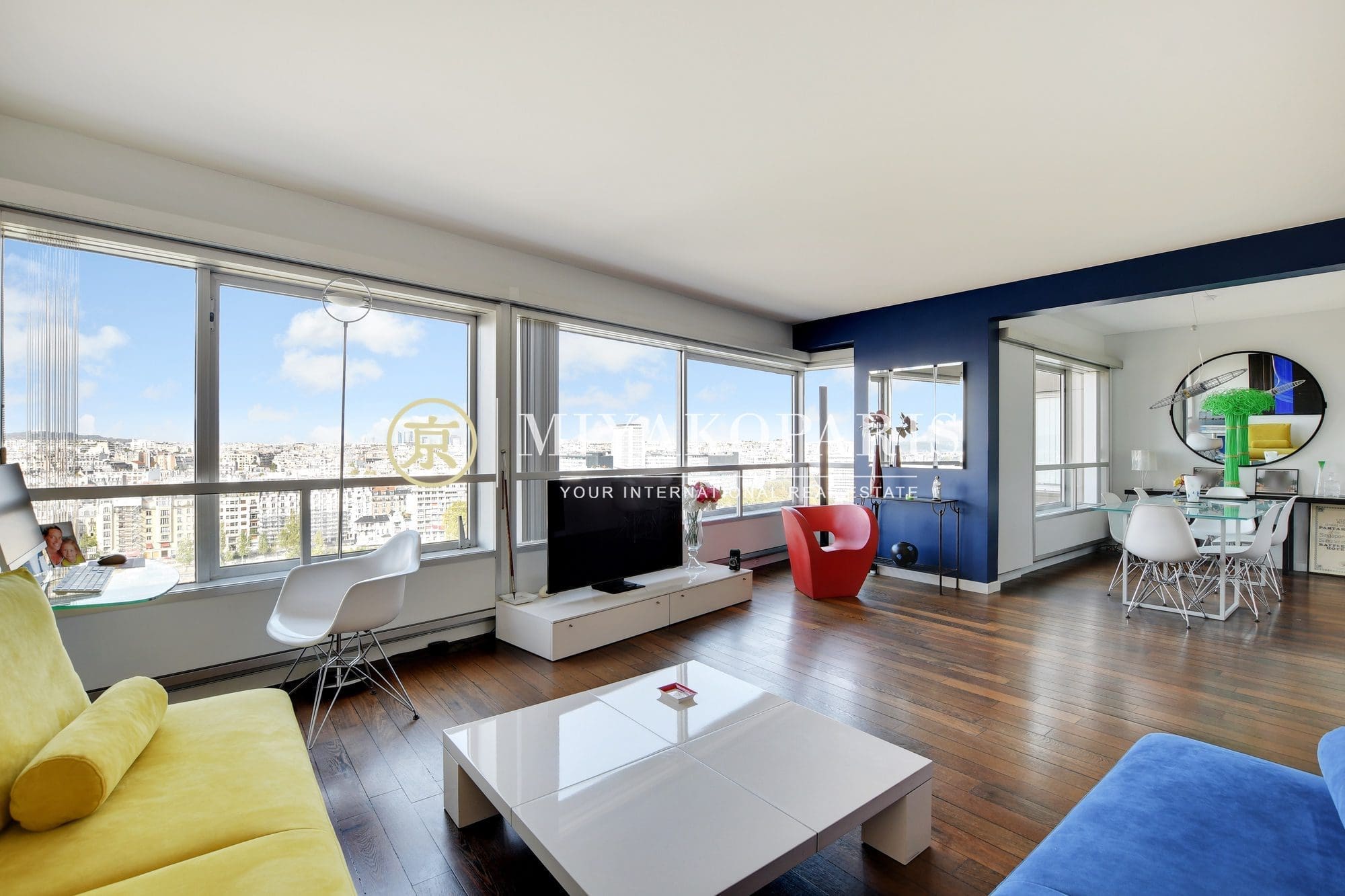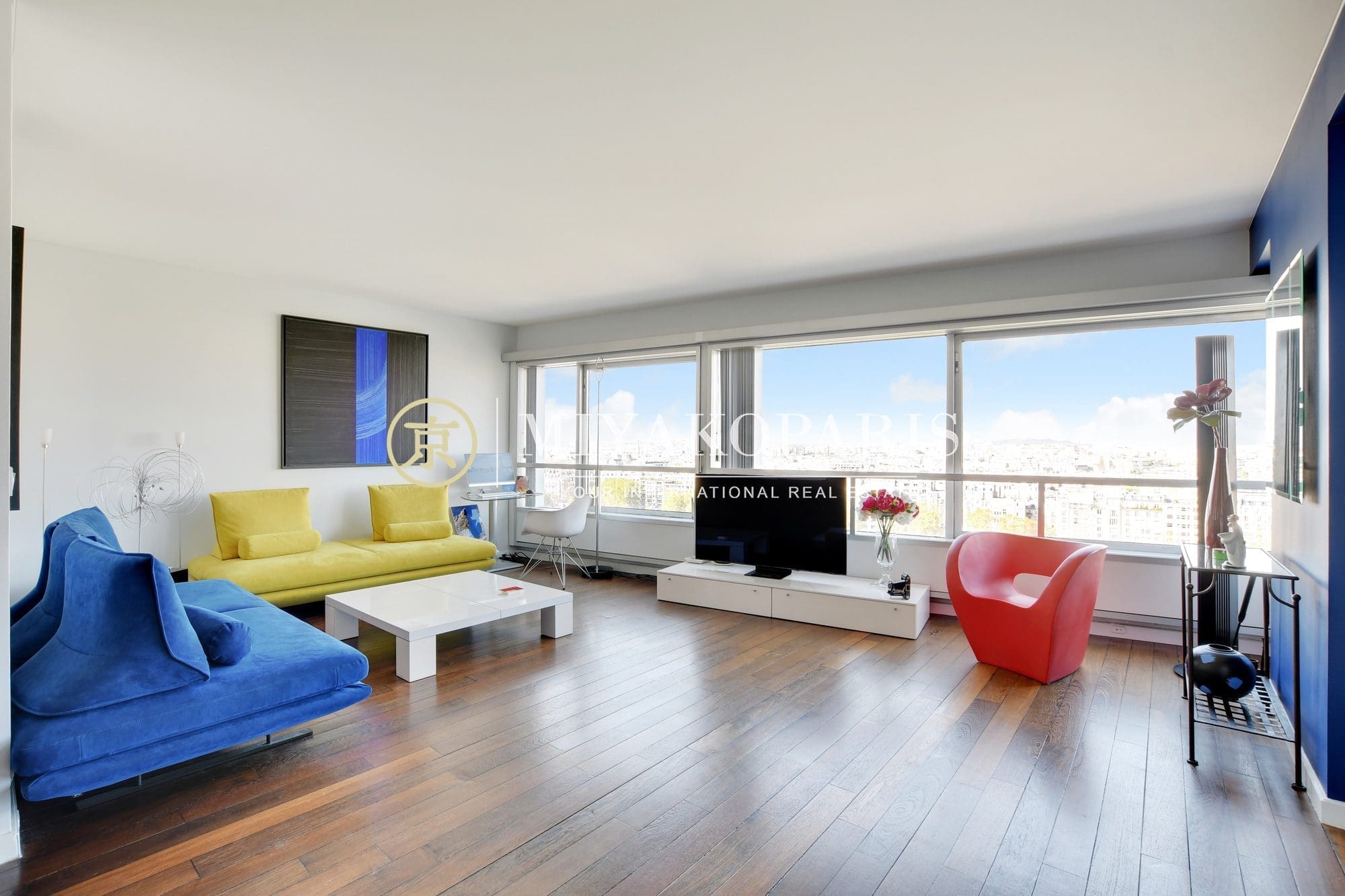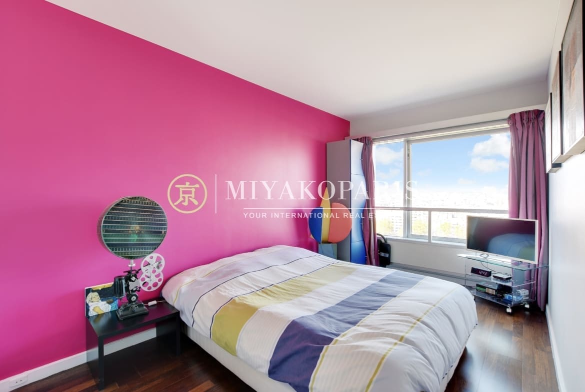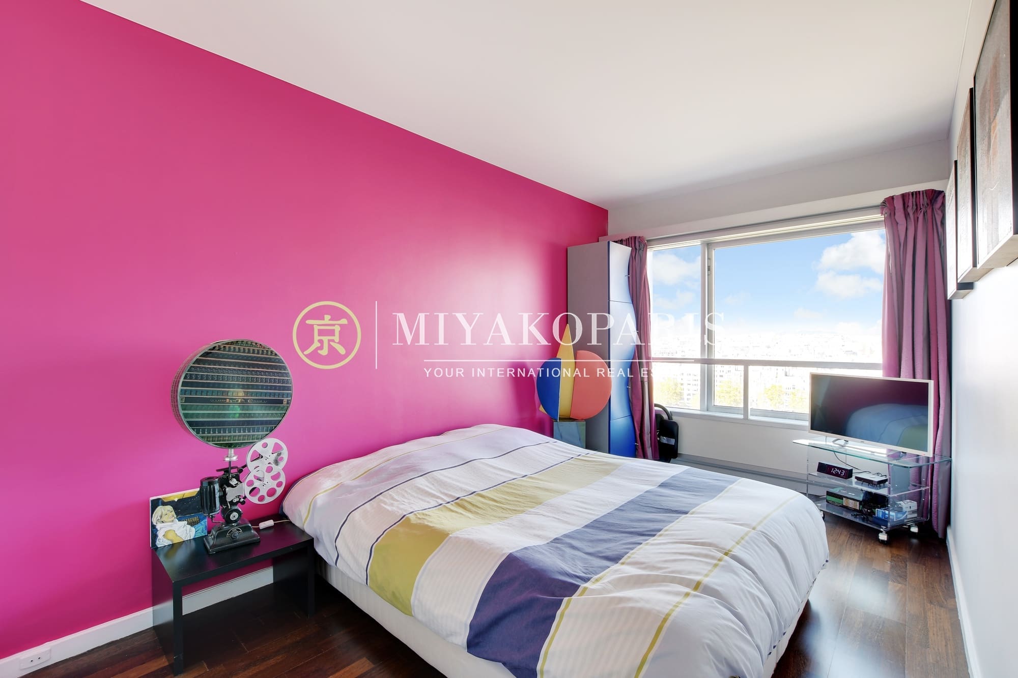 VUE PANORAMIQUE SEINE – COUP DE CŒUR ASSURÉ – Paris XVe, Front de Seine. Appartement 3 pièces de 74.82m² Loi Carrez offrant une vue en hauteur et panoramique sur la Seine, les toits de Paris, le Mont Valérien ainsi que la Statue de la Liberté composé comme suit : Entrée, séjour, cuisine indépendante équipée (US possible), 2 chambres baignées de lumière, 1 salle de douche, W.C séparés. Nombreux rangements. Matériaux de qualité. Parties communes au design haut de gamme. Rare.