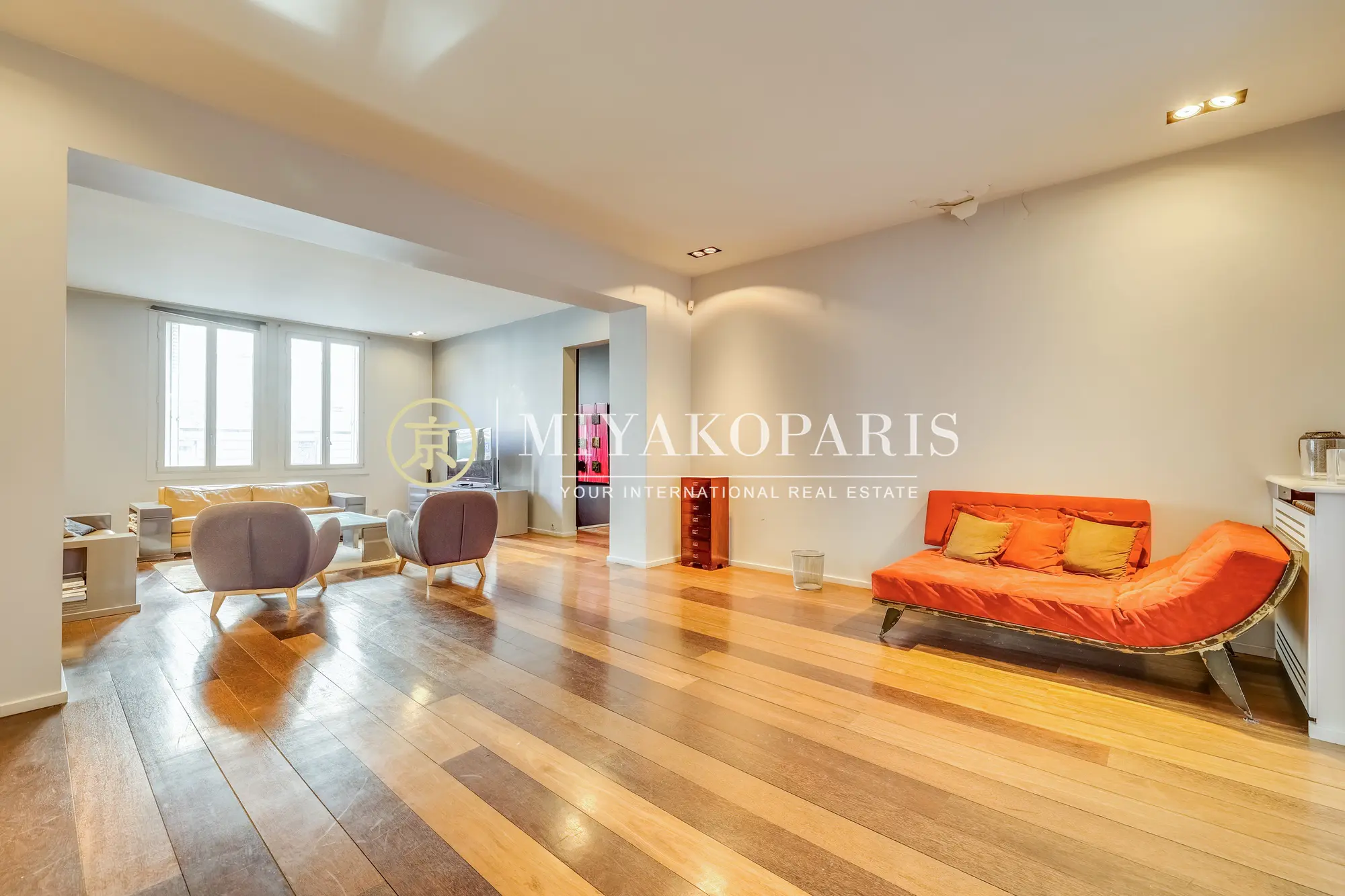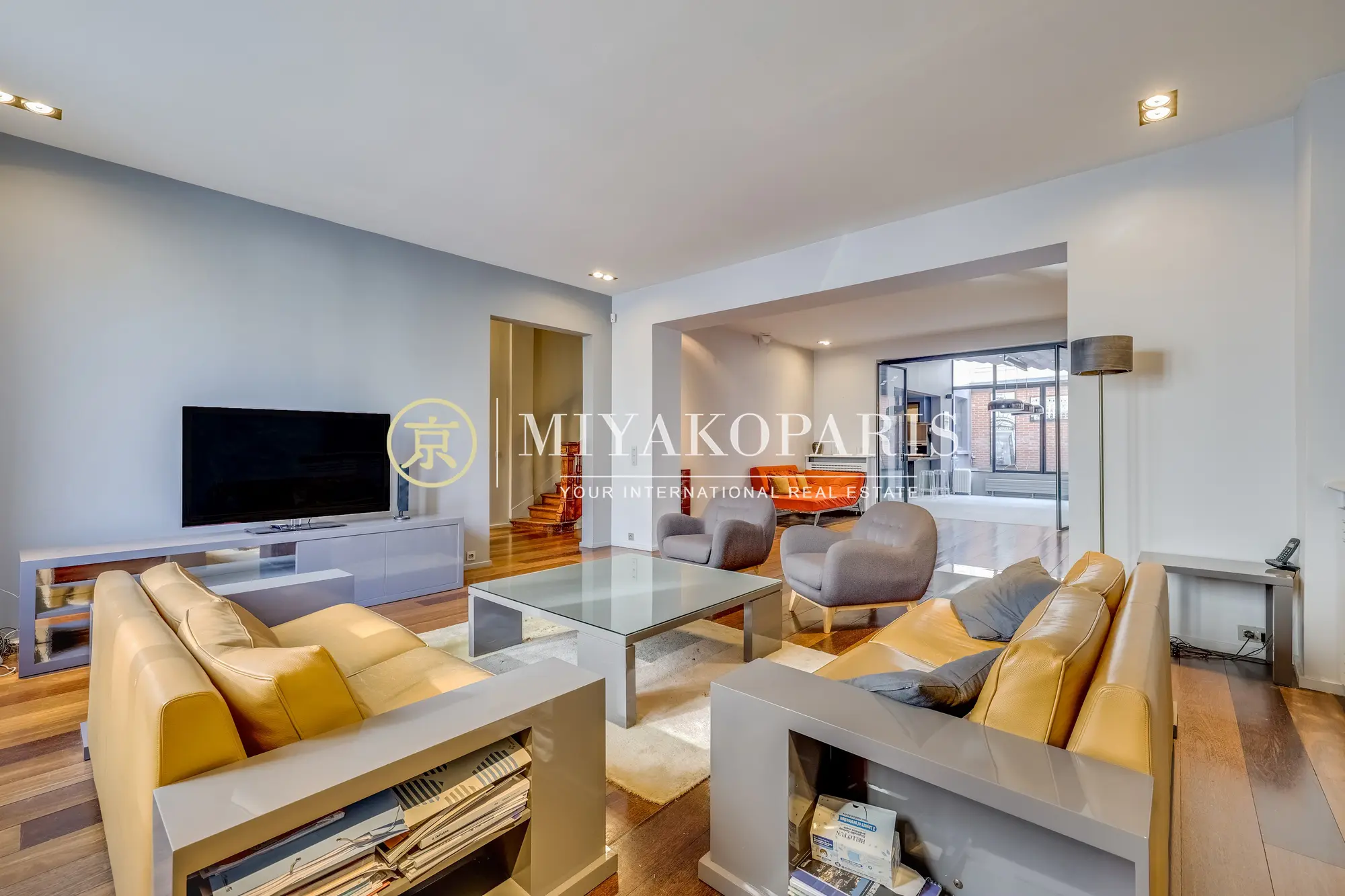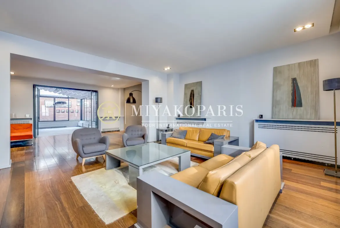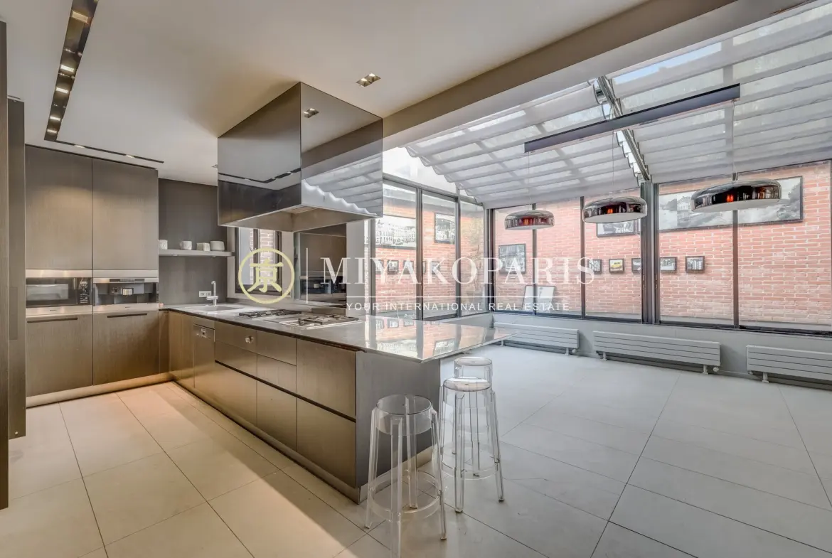 Dès l’entrée, vous êtes accueilli par un espace de réception majestueux et baigné de lumière. La triple réception de 85 m² séduit par ses volumes exceptionnels et son atmosphère chaleureuse, idéale pour recevoir ou se détendre. La cuisine équipée s’ouvre sur un jardin d’hiver de 15 m², véritable havre de lumière et de verdure.