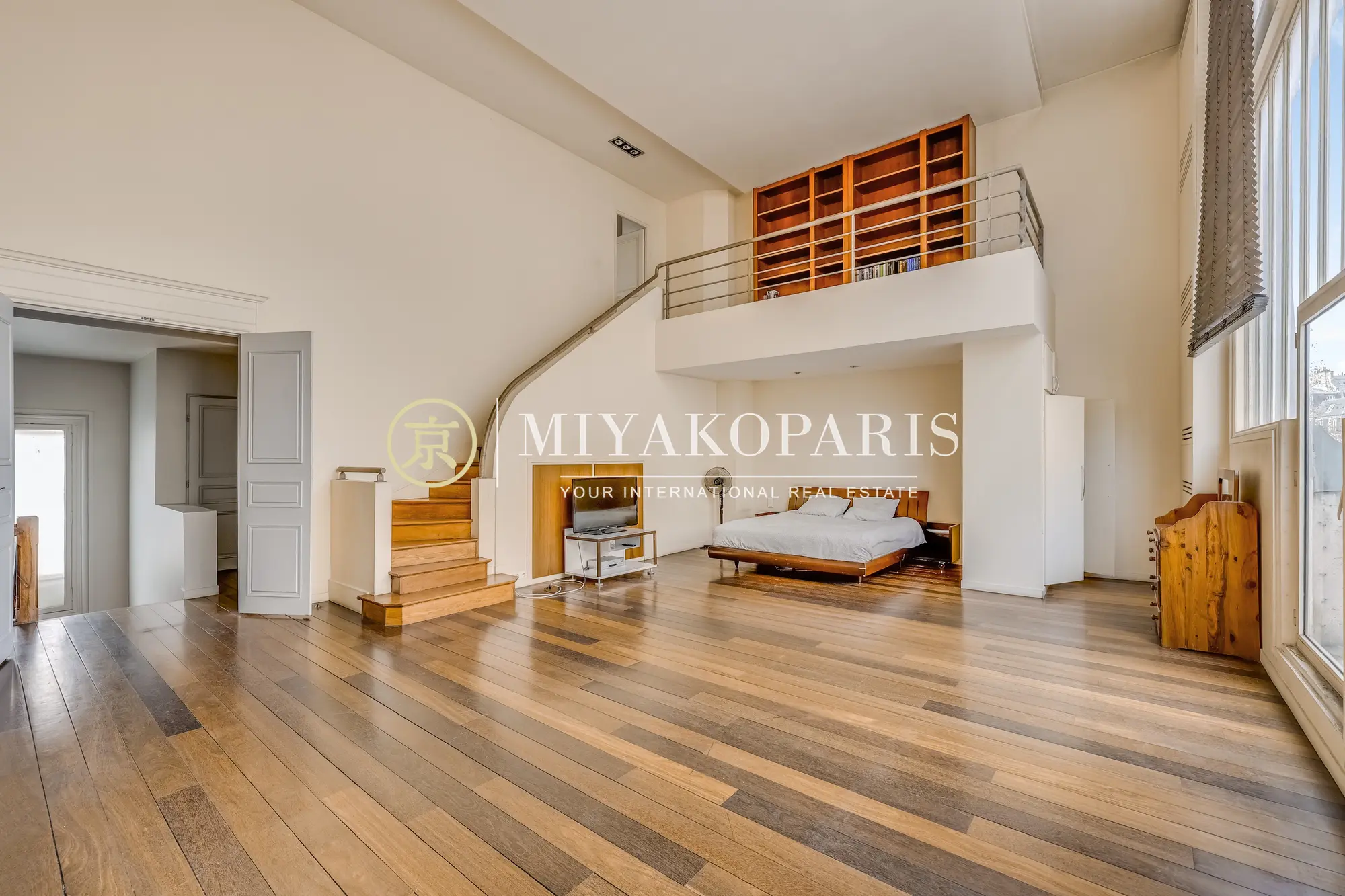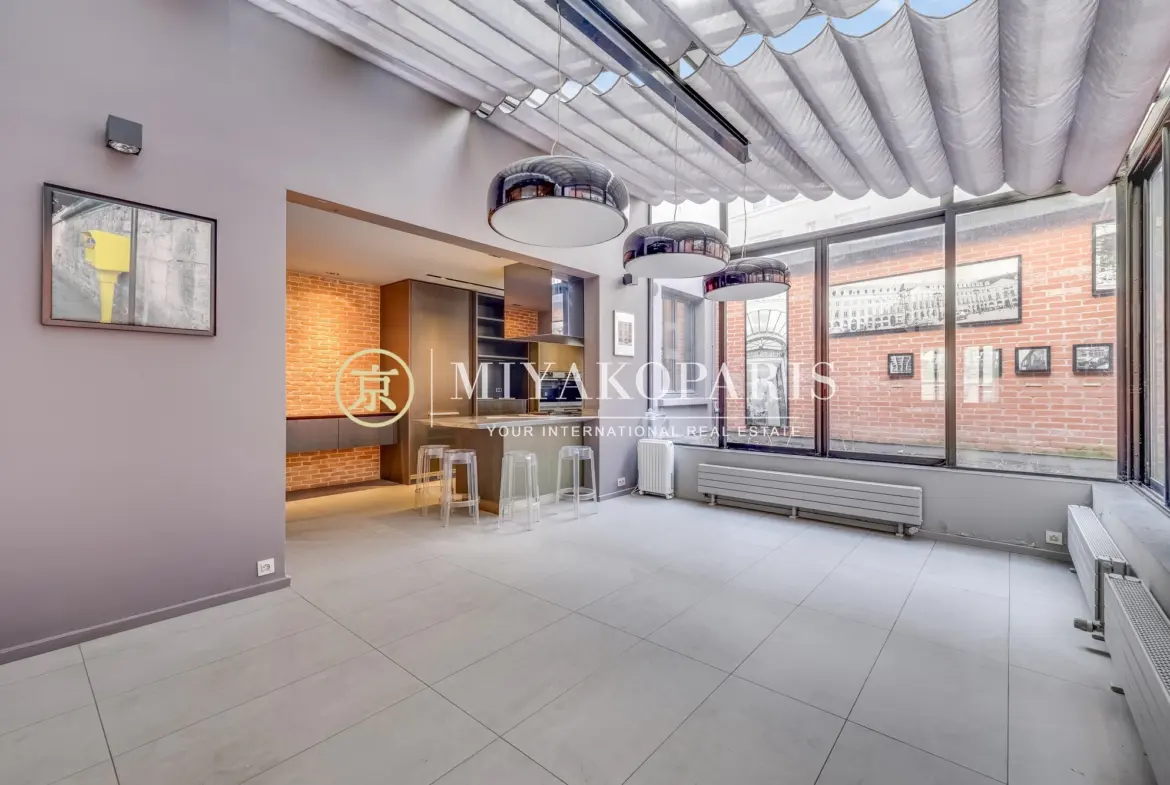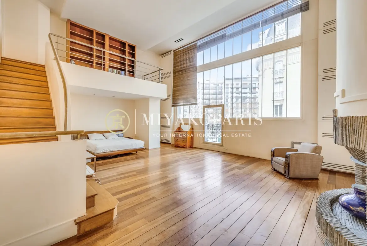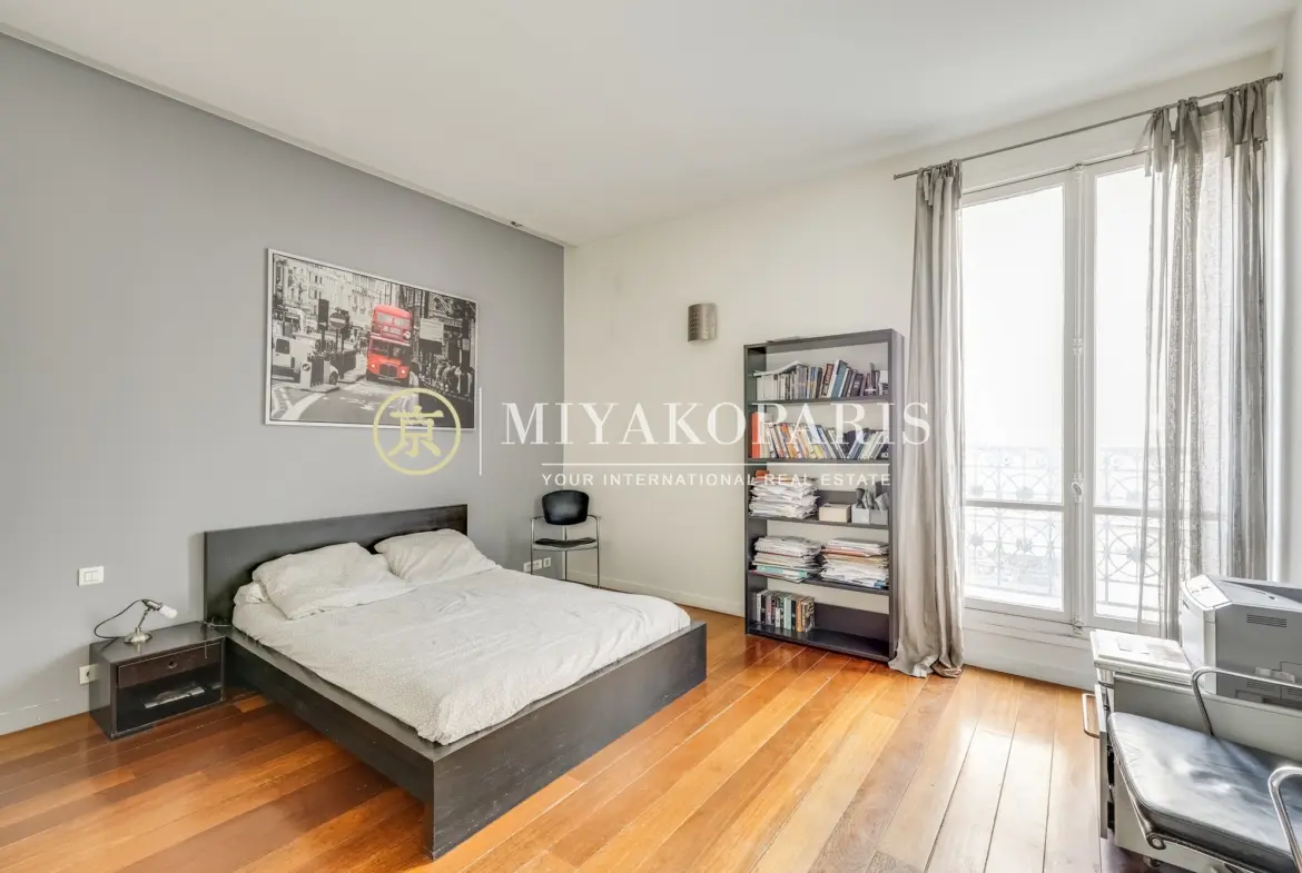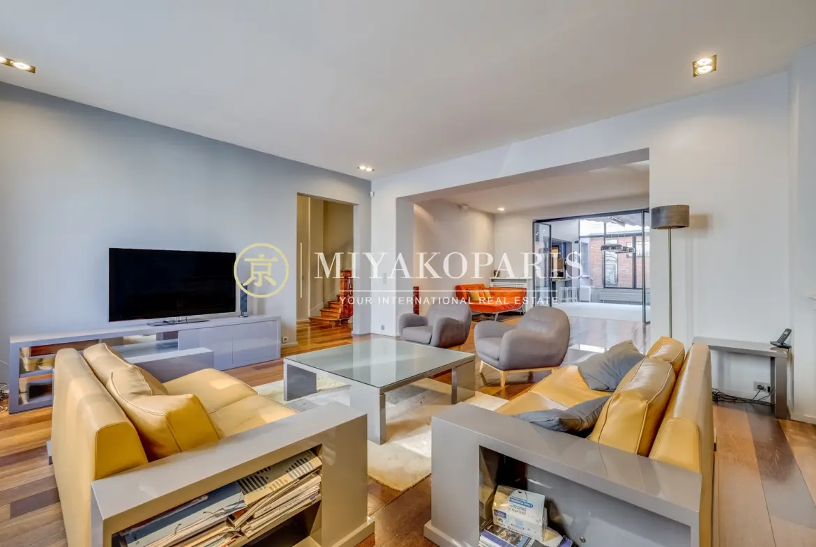 Le second étage dévoile un ancien atelier d’artiste doté d’une magnifique verrière d’époque, aménagé en suite parentale avec cheminée, dressing et salle de bains privative. La lumière naturelle met en valeur le charme et le caractère unique de ce lieu.
