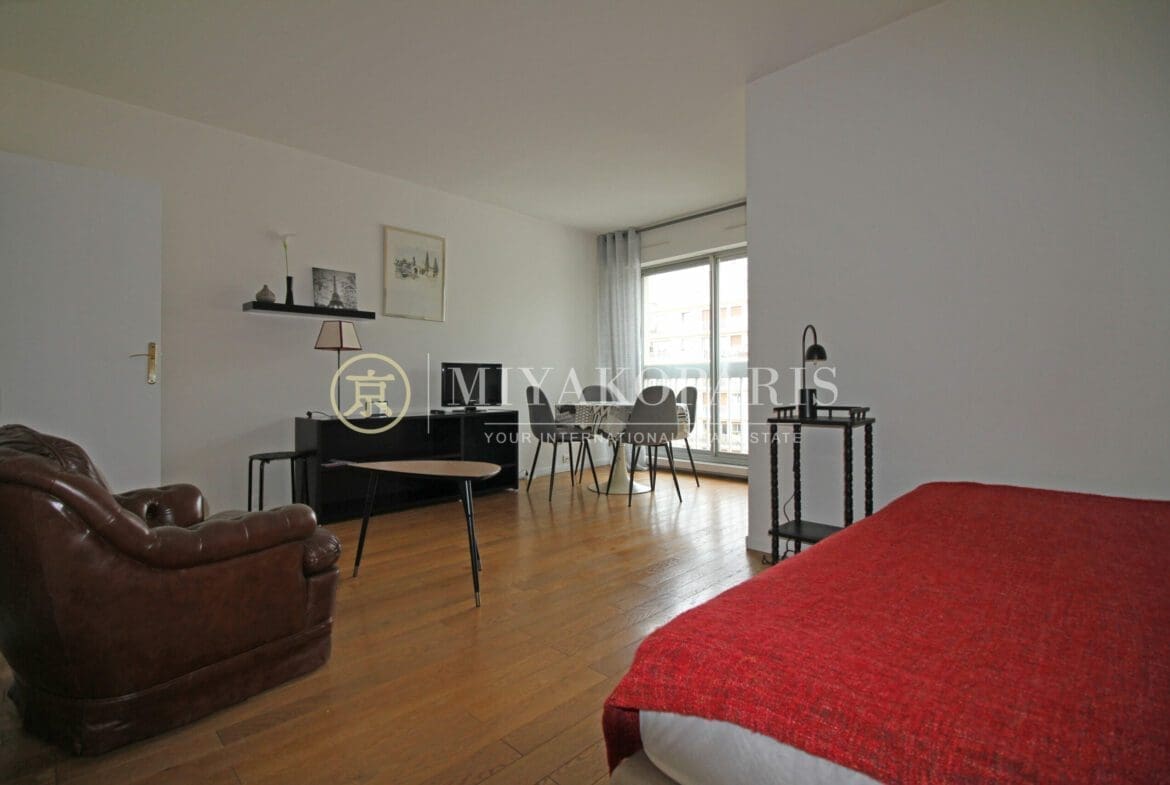 Paris XV- This spacious studio comprises an entrance, a bathroom, the principal room, a separated kitchen.