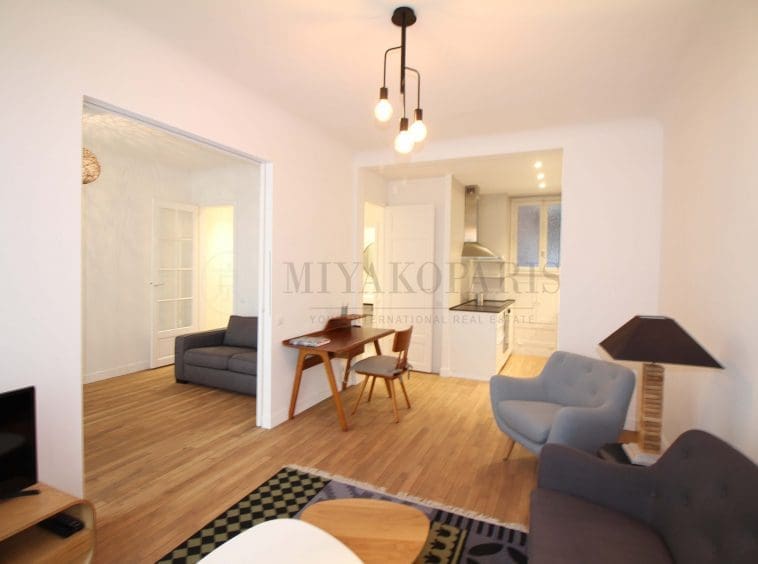 Paris XVIe– Appartement refait entièrement à neuf se compose: entrée, salon, salle à manger (possibilité 2ème chambre),cuisine américaine équipée, 1 chambre, salle de douche avec WC.