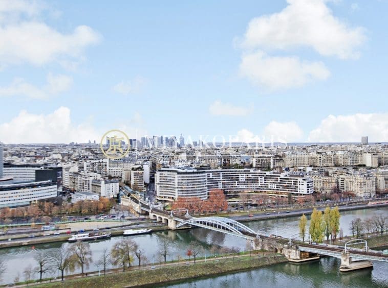 Paris XVe- Front de Seine- Situé dans la Tour la plus prisée du Front de Seine. Venez découvrir ce vaste appartement de 124m2 bénéficiant d’une vue infinie sur la Seine se compose : entrée, double séjour d’angle, 2 chambres, 1 salle de bains avec WC, 1 salle de douche avec WC, cuisine indépendante équipée (US possible), 2 dressings et une buanderie. Prestations de qualité. Plan aisément modulable. A découvrir de suite! Rare.