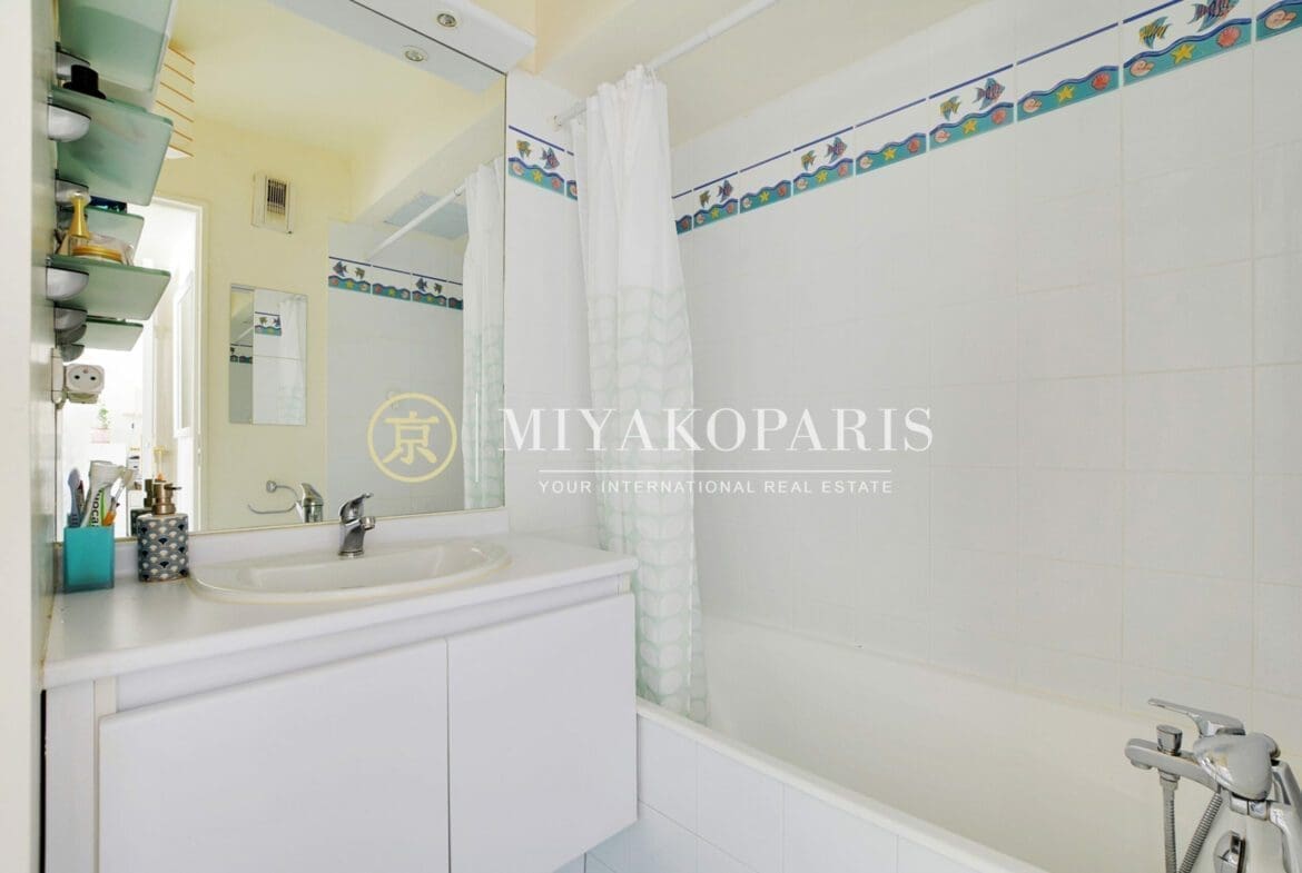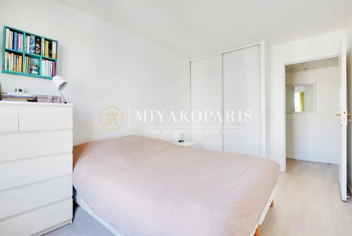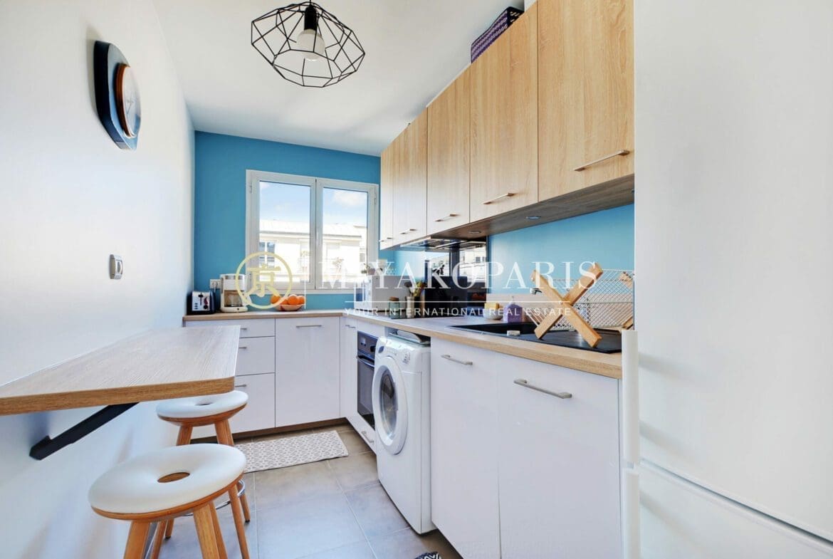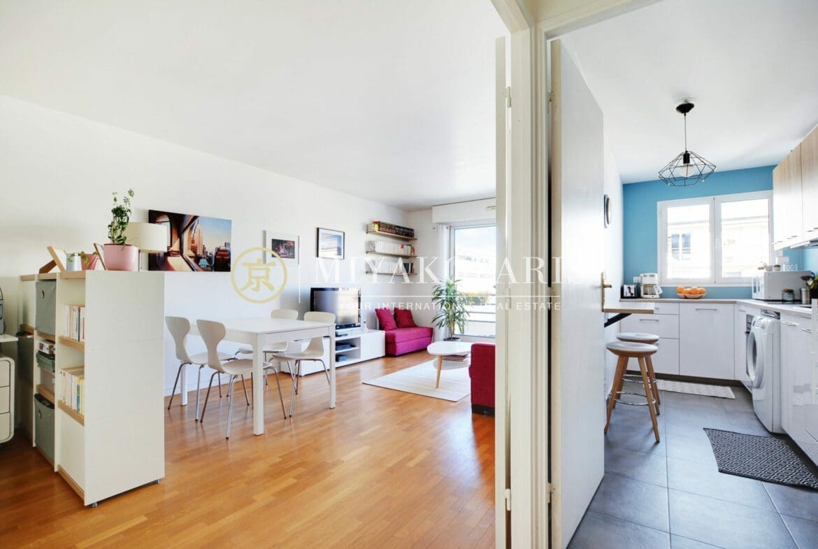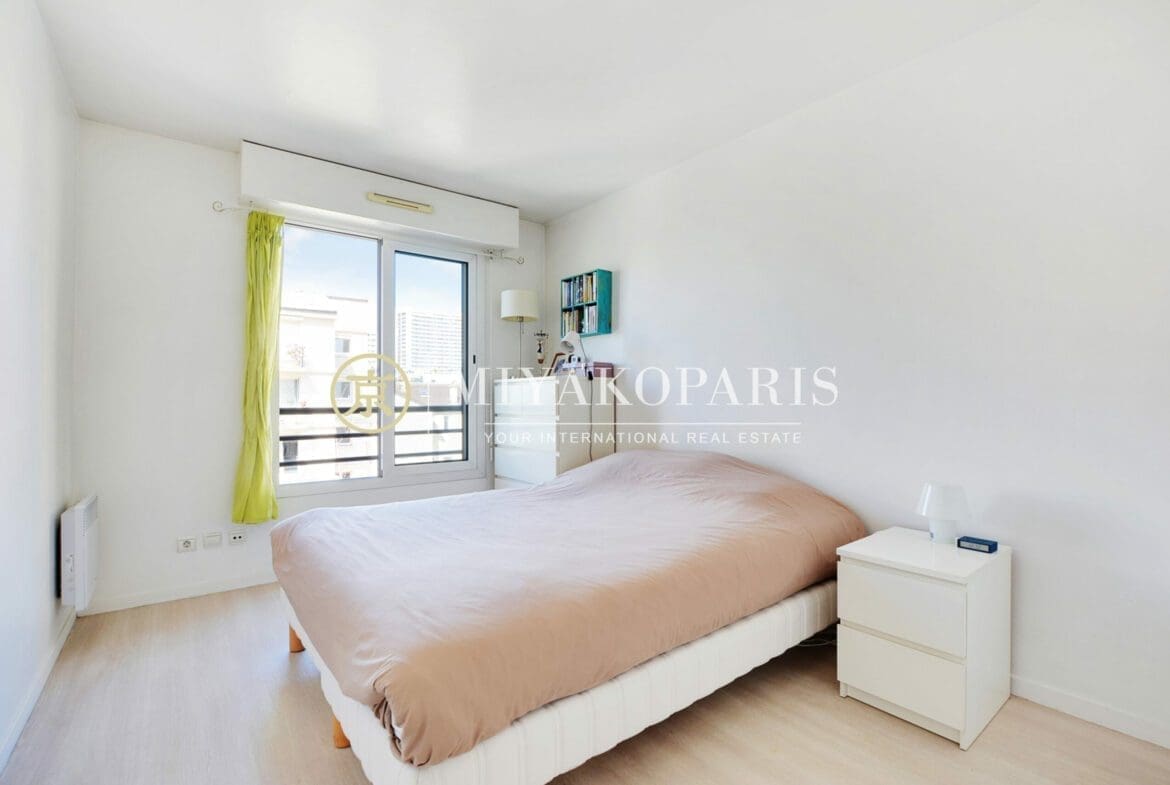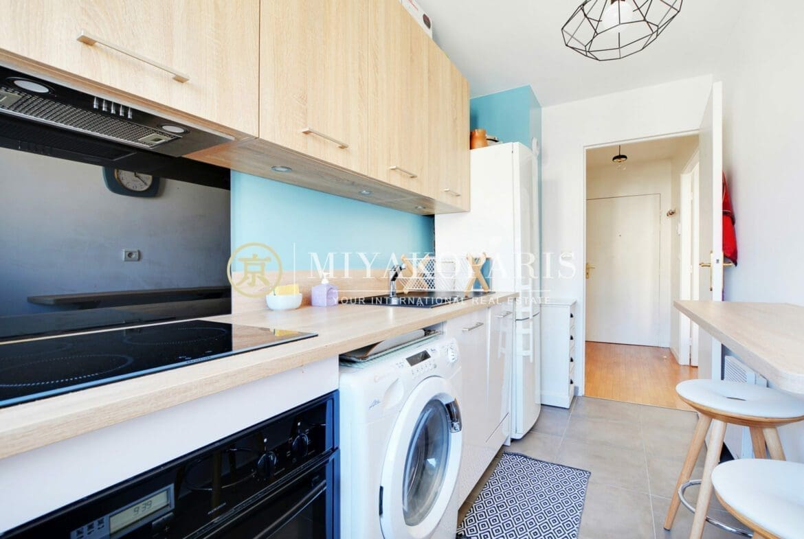 Exclusivité – Paris XVe, Appartement 2 pièces refait entièrement à neuf bénéficiant d’une vue dégagée et verdurée se compose comme suit: Entrée, séjour ensoleillé donnant sur un balcon arboré de 2,27 m², coin bureau, cuisine indépendante aménagé et équipée (US possible), 1 chambre, 1 salle de douche, WC séparés. Nombreux rangements. Parties communes moderne. Calme absolu.