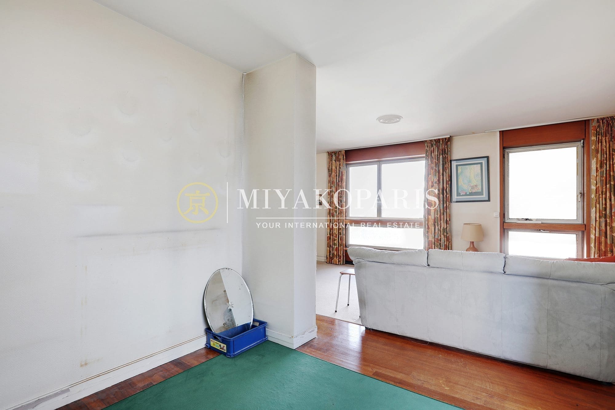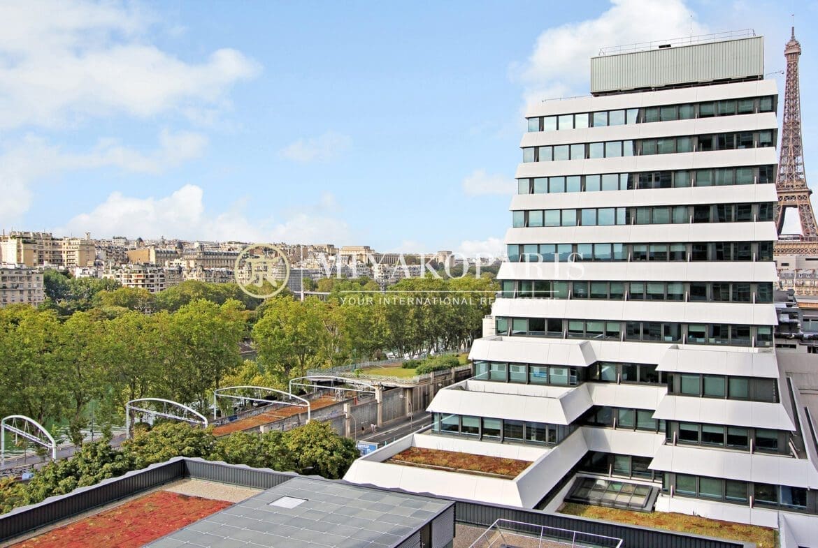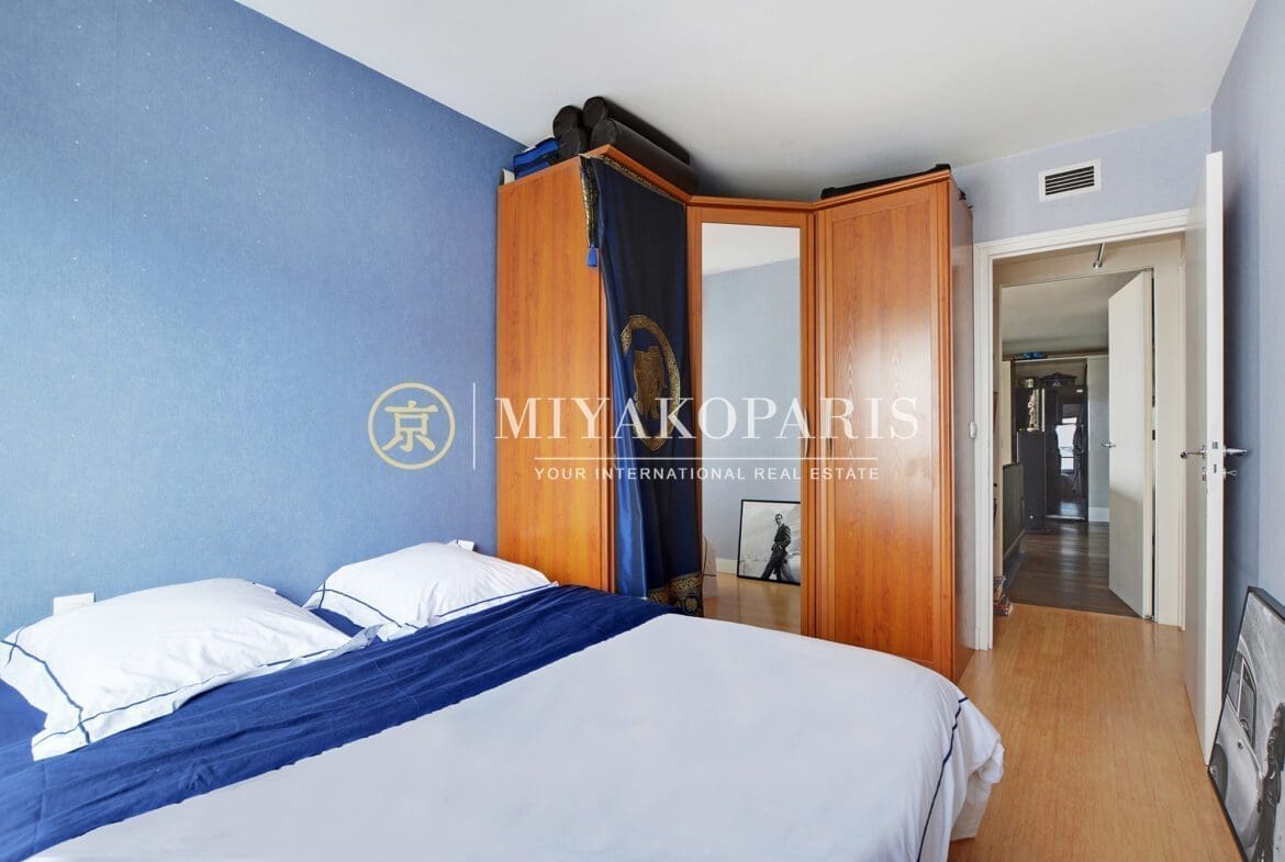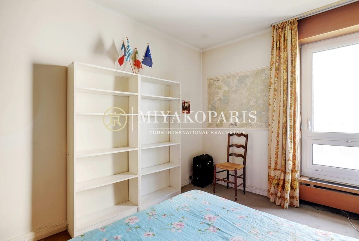 MIYAKOPARIS, L’Agence du Front de Seine ! EXCLUSIVITÉ – Paris XVe – Dans un immeuble de bon standing et haute surveillance, en hauteur. Appartement d’angle à rénover de 70,42m² Loi Carrez offrant une vue partielle sur la Seine ainsi que la Tour Eiffel se compose : entrée, double séjour (2ème chambre possible), cuisine indépendante équipée (US possible), 1 chambre, 1 salle de bains, WC invités. Belles prestations.
