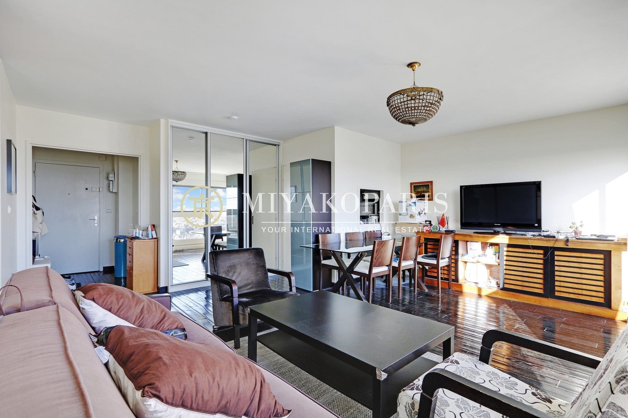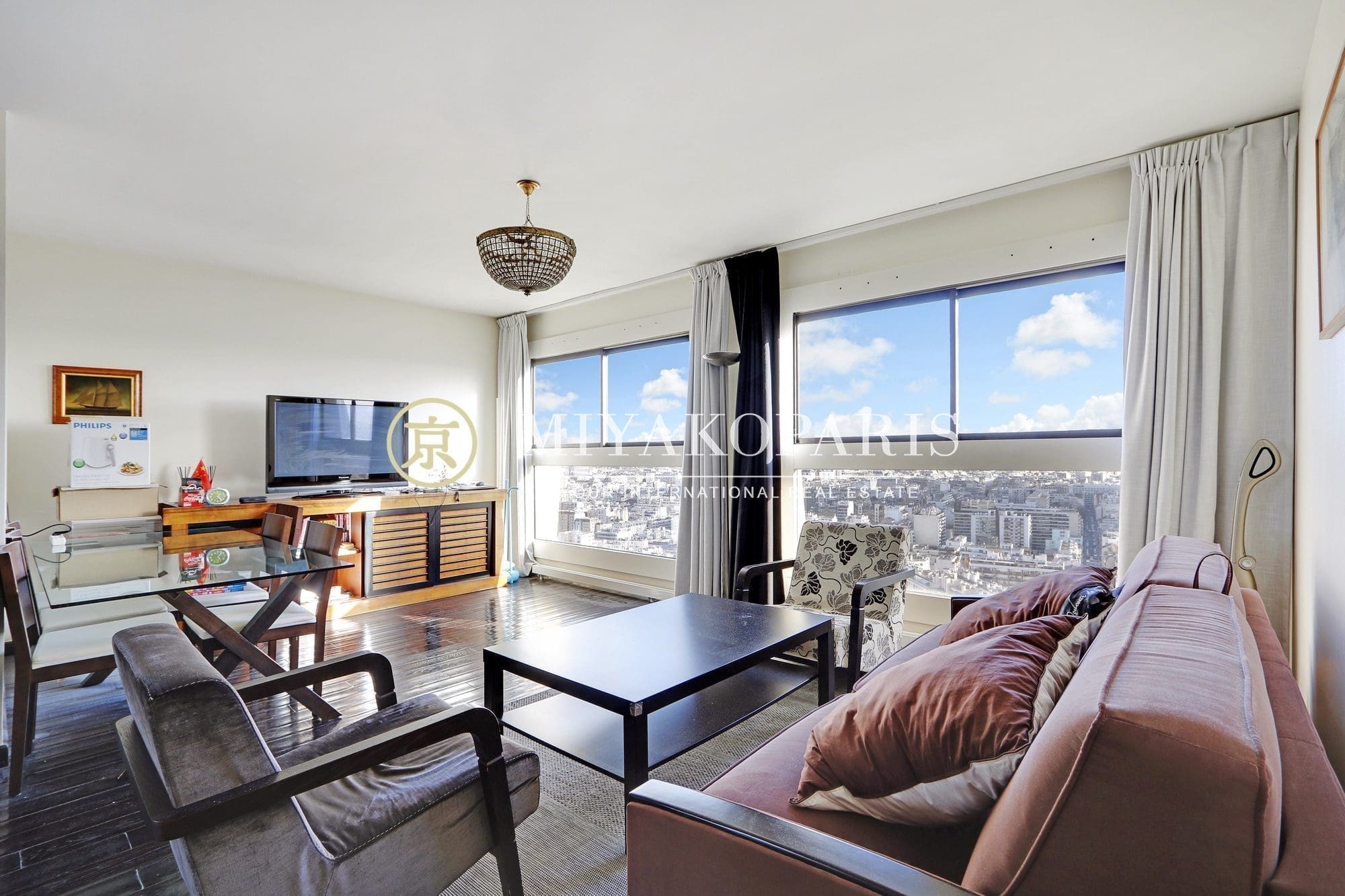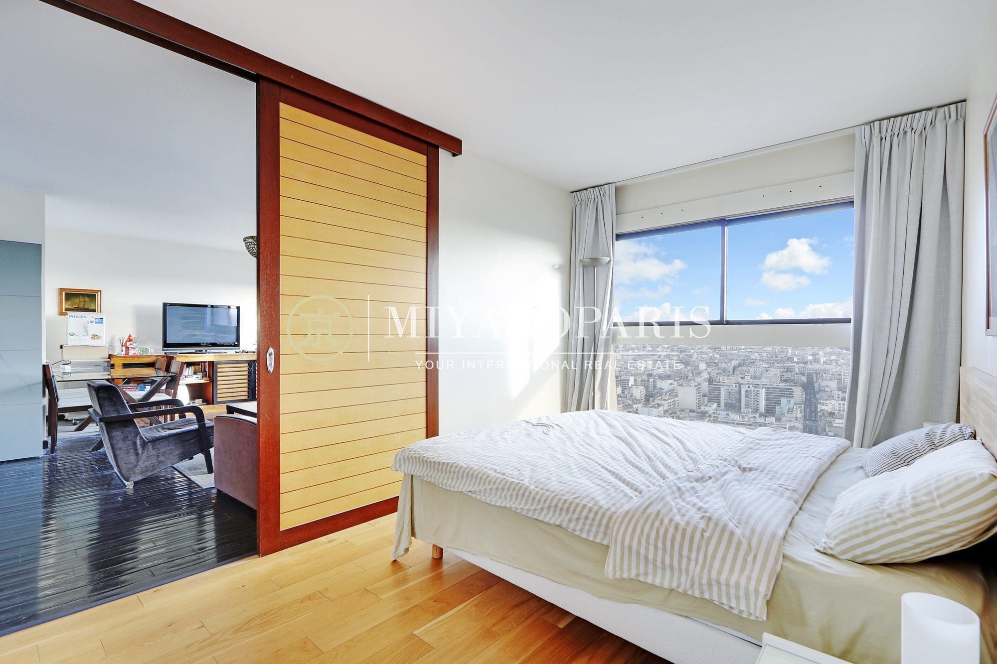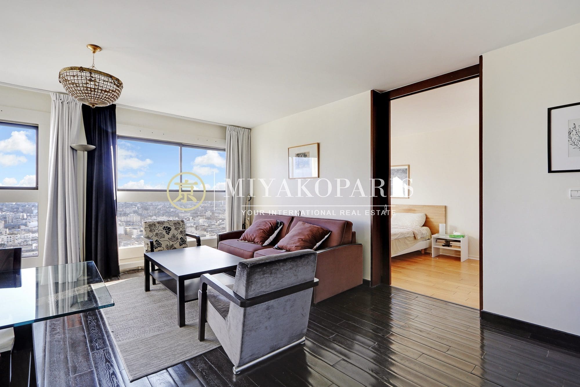MIYAKOPARIS, L’Agence du Front de Seine ! Exclusivité – Paris XVe – Appartement 2 pièces de 51,34m² Loi Carrez bénéficiant d’une vue aérienne sur Paris / Monuments se compose: entrée, salon, cuisine semi-ouverte entièrement aménagée et équipée, 1 chambre, 1 salle de bains, WC séparés. Calme absolu.