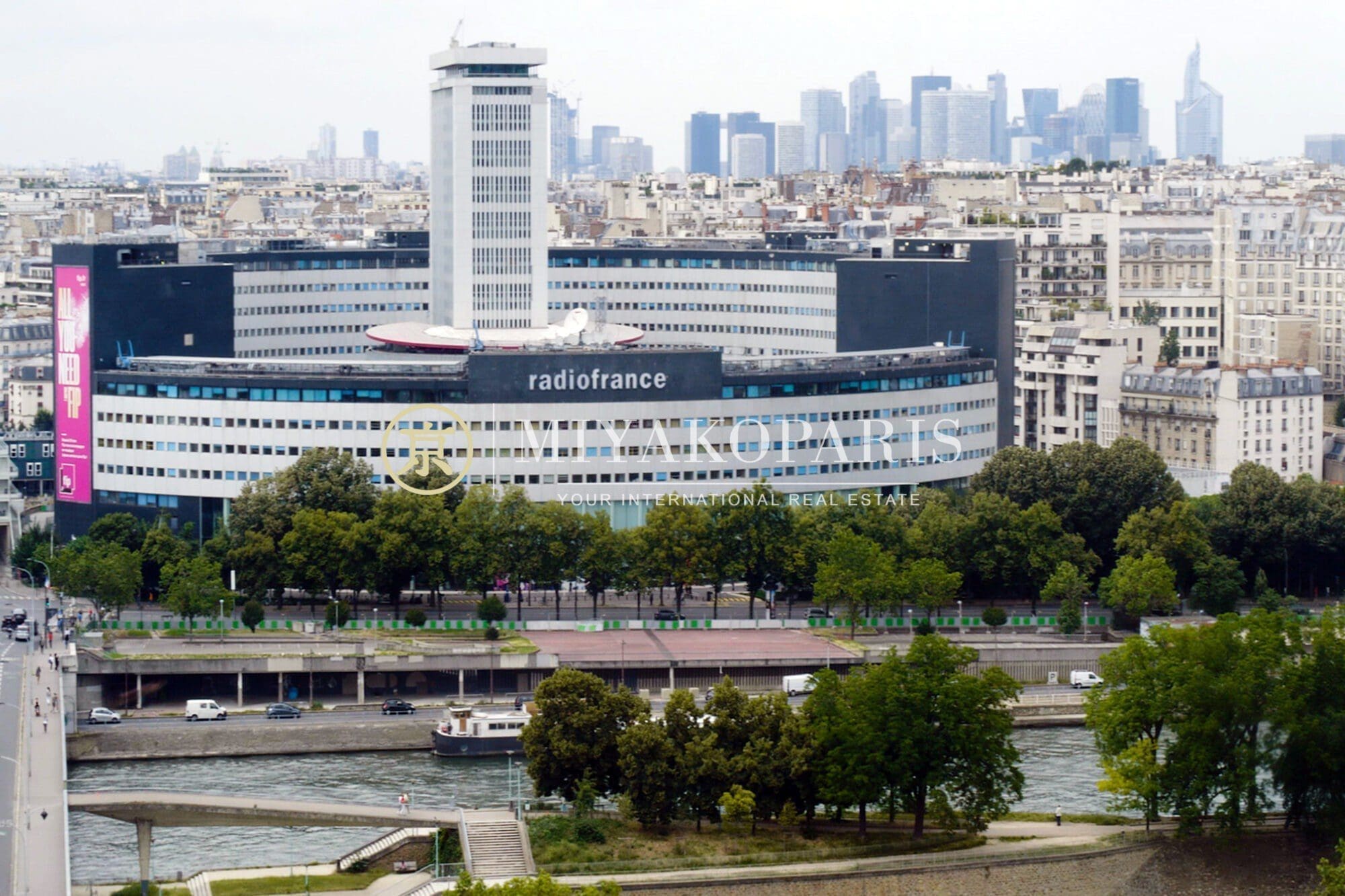 MIYAKOPARIS, L’Agence du Front de Seine ! COUP DE COEUR – Paris XVe – Dans un immeuble de bon standing et haute surveillance. Appartement climatisé d’angle de 93,73m² offrant une vue à 180 degrés sur la Seine, les toits de Paris, le Mont Valérien et La Défense se compose comme suit: entrée, spacieux séjour, cuisine américaine entièrement équipée, 2 chambres bénéficiant d’une salle d’eau et une salle de douche avec WC, WC invités. Belles prestations.