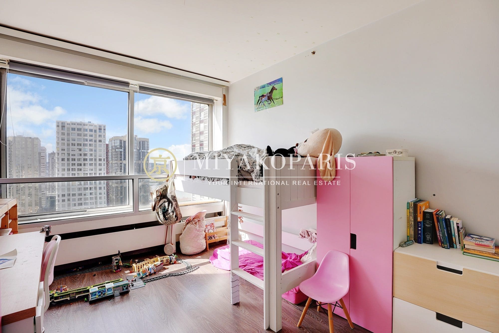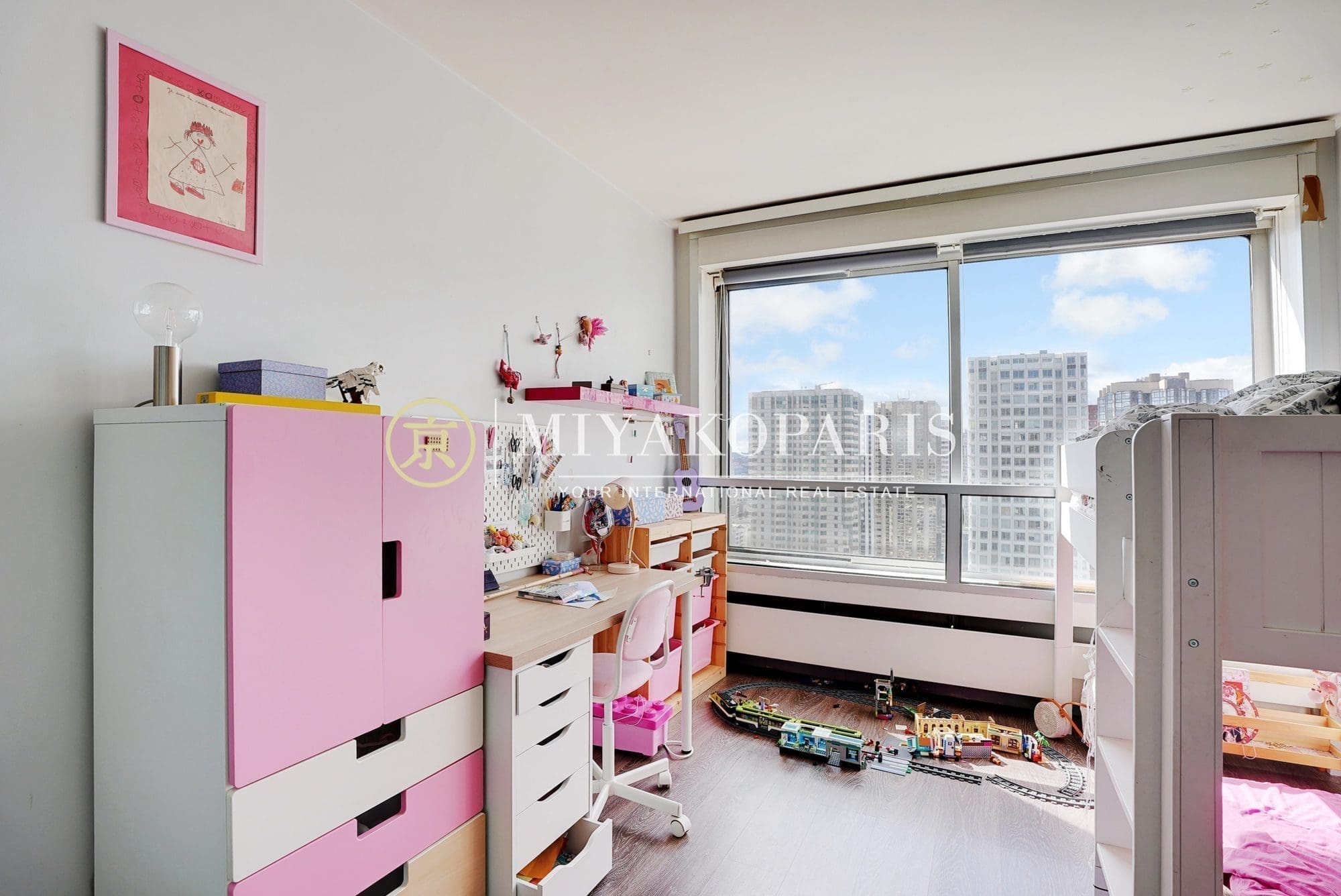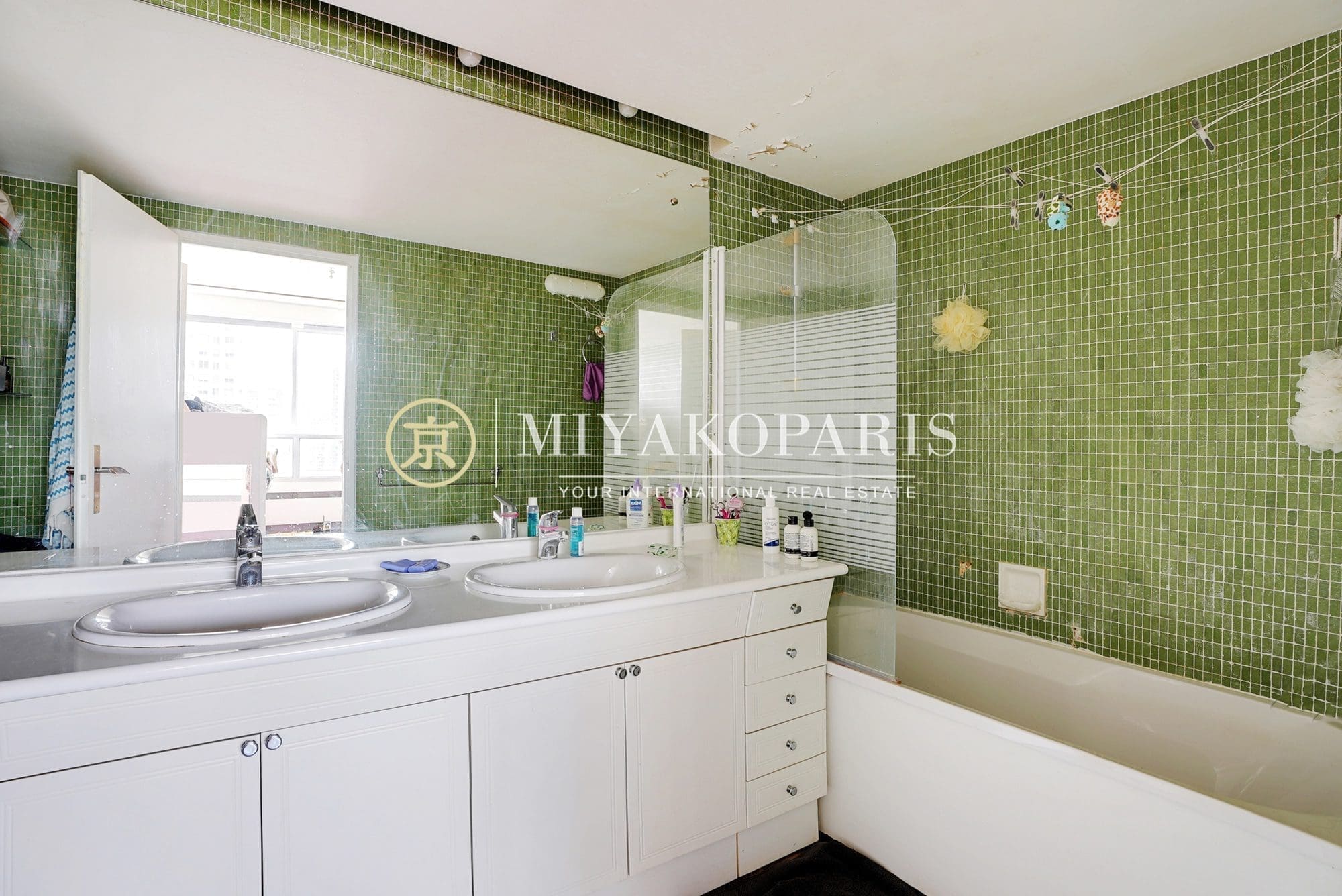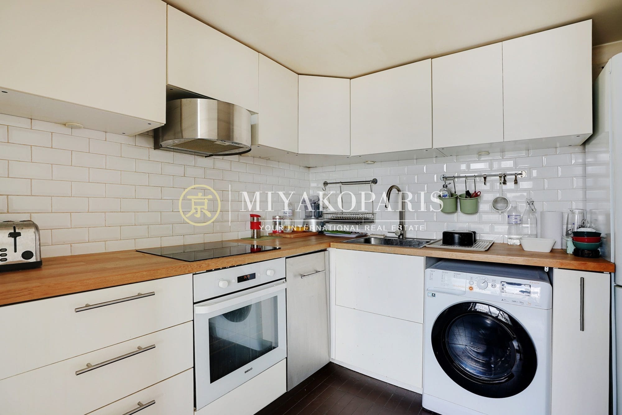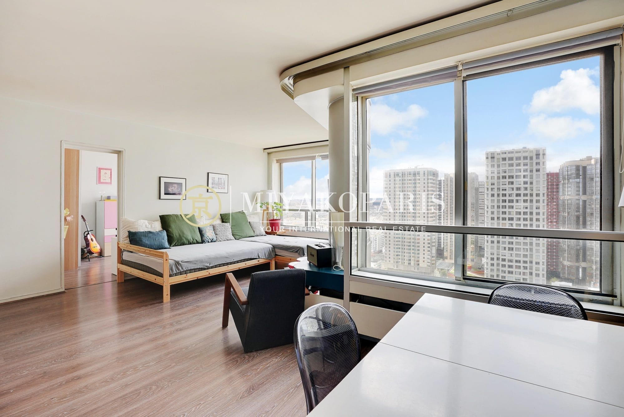 MIYAKOPARIS, L’Agence du Front de Seine ! Paris XVe – En étage élevé, 2/3 pièces de 57,16m² Loi Carrez composé comme suit : entrée, double séjour (Possibilité 2ème chambre, scénario disponible sur demande), cuisine indépendante équipée, 1 chambre, 1 salle de bains, WC séparés. Belles prestations. Rafraichissement à prévoir.