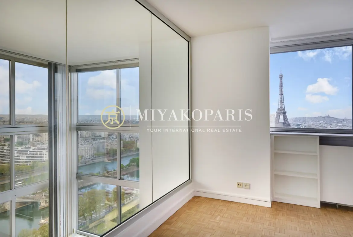 Paris 15e – Venez découvrir sans attendre ce duplex d’exception de 135.60m² (118 m² Loi Carrez) offrant une vue aérienne sur la Tour Eiffel, la Seine ainsi que de nombreux monuments. Rare.