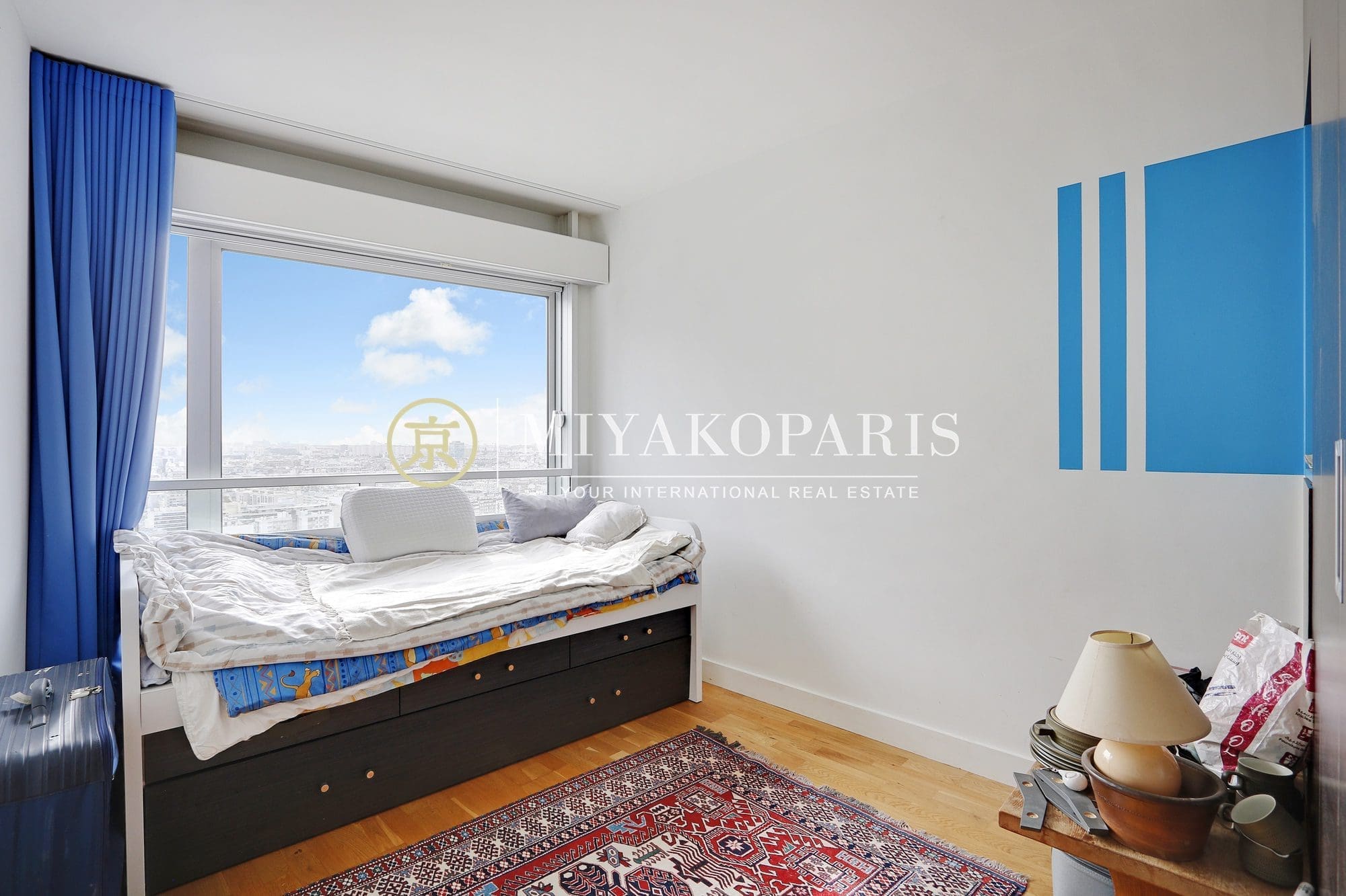 De l’autre côté la partie nuit agencée comme suit : 4 chambres perchées sur le paysage Parisien, 2 salles de douche et 2 WC d’invités. Nombreux rangements.