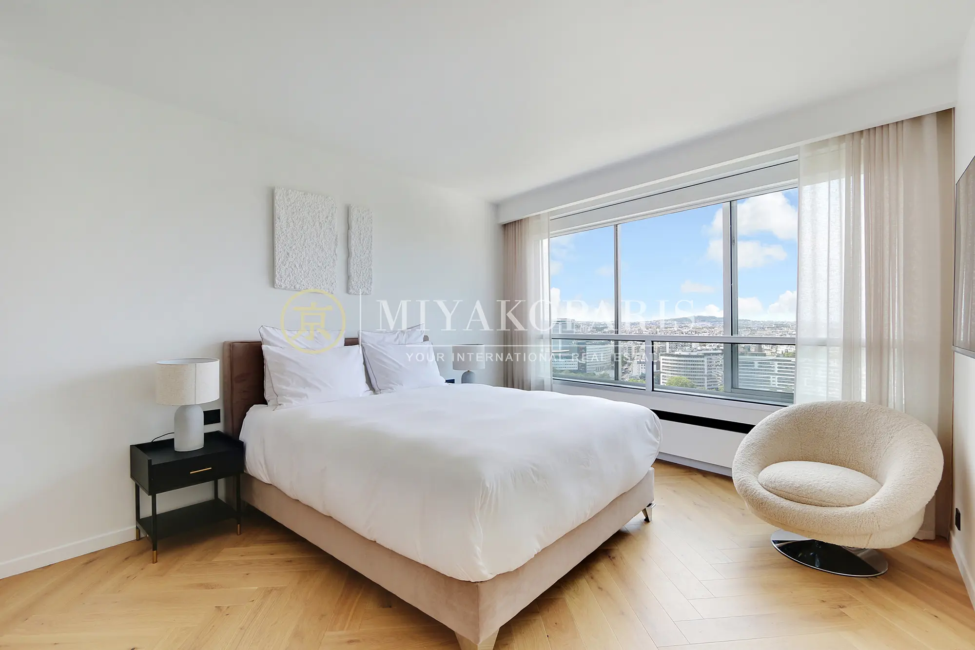 VUE TOUR EIFFEL / SEINE l Paris XVe l Venez découvrir cet appartement d’exception refait entièrement à neuf offrant une vue inédite à 180 degrés sur la Tour Eiffel / Seine / Nombreux Monuments. (Invalides, le Panthéon, la Cathédrale Notre-Dame de Paris)