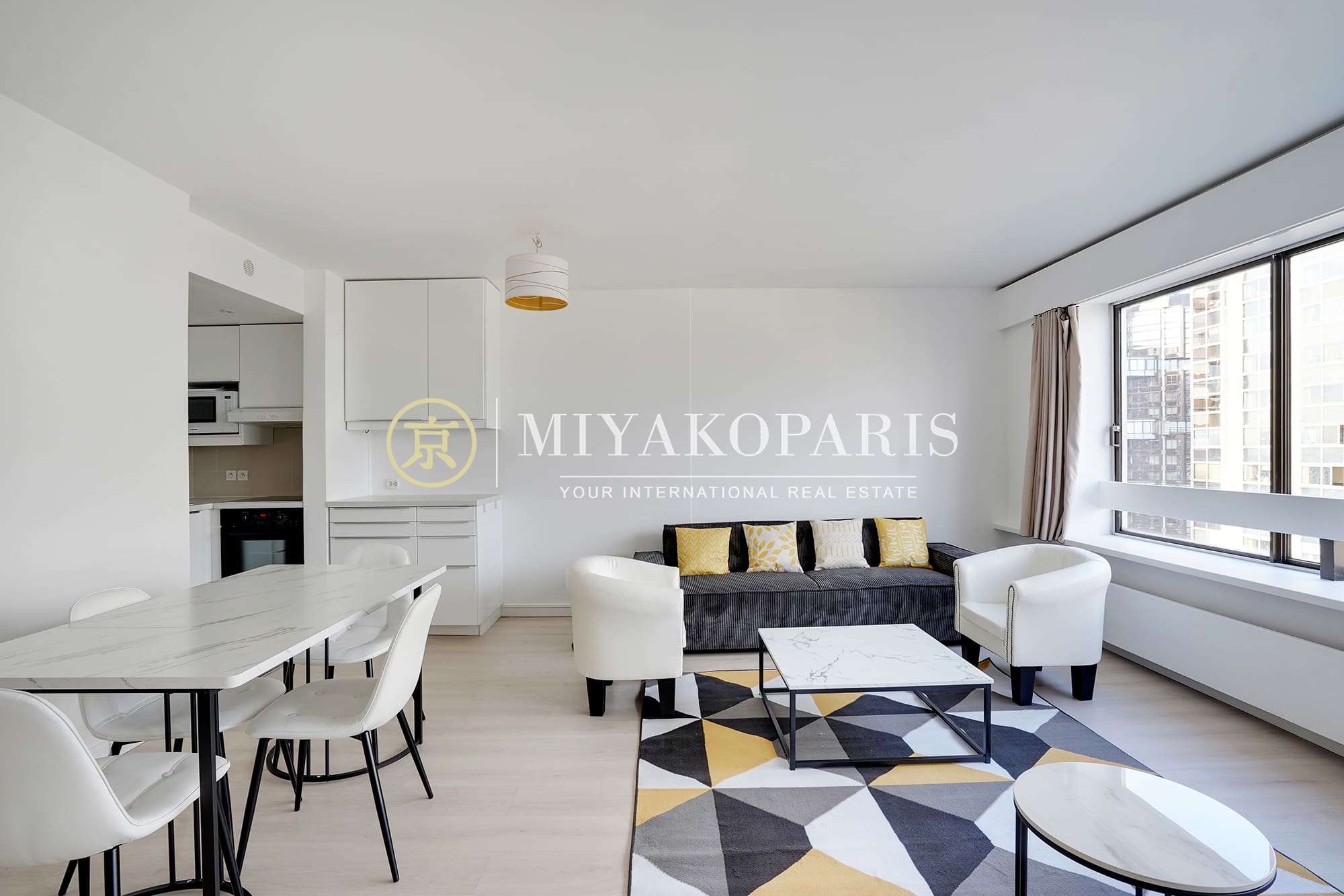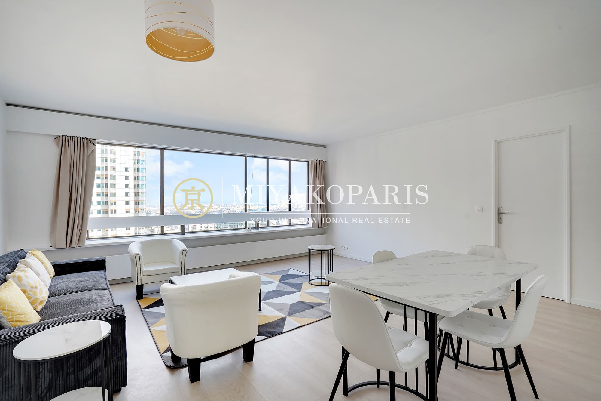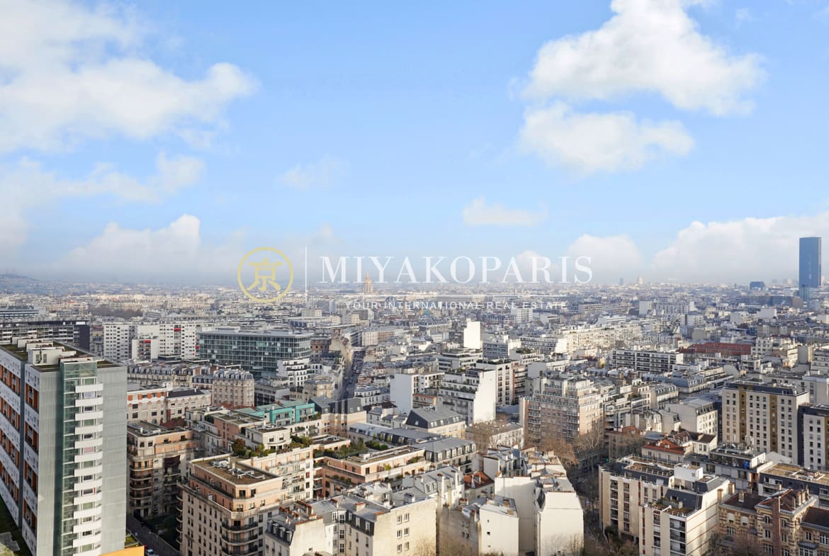 EXCLUSIVITÉ – Paris XVe – En étage très élevé offrant une vue sur Paris / Invalides, ce 2 pièces se compose : entrée, beau séjour baigné de lumière naturelle, cuisine américaine équipée, 1 chambre, 1 salle de douche,WC séparé, 2 débarras. Lumineux & Calme absolu.
