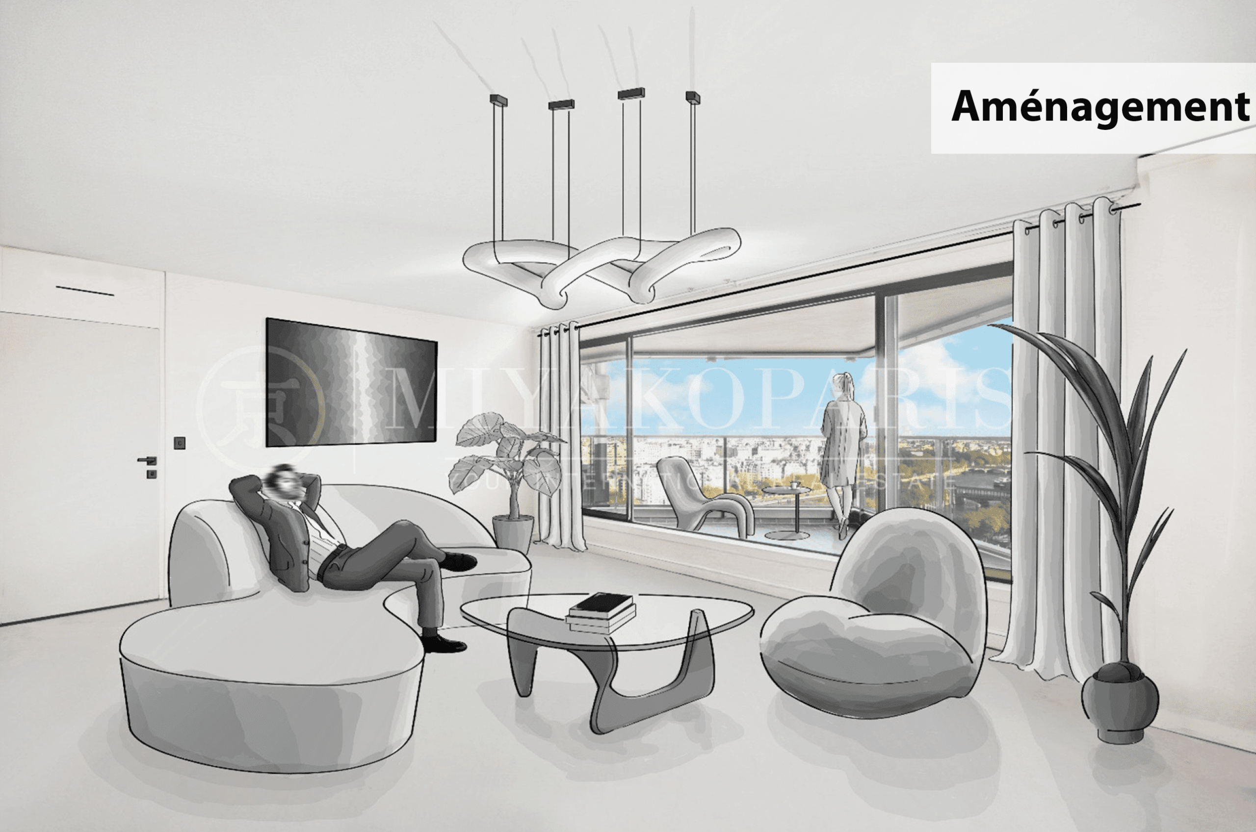 Perché au-dessus des toits de Paris, au sein de la mythique Tour Totem, cet appartement d’exception se dévoile pour la première fois sur le marché depuis plus de 45 ans. Il offre une vue panoramique à couper le souffle sur la Seine, la Tour Eiffel, le Trocadéro, le Dôme des Invalides et les horizons ouest, nord et est de la capitale.