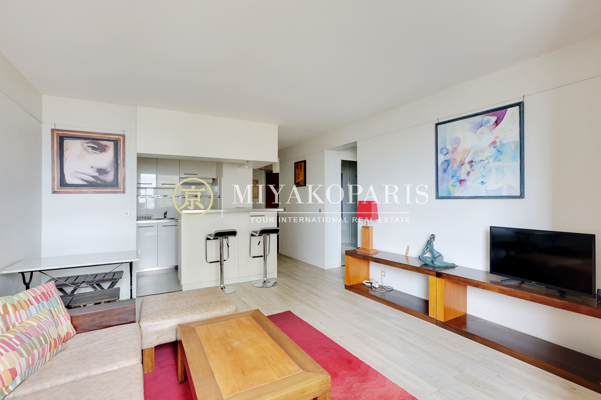 Appartement 2 pièces de 43,24 m² Loi Carrez, au plan optimisé, offrant une vue dégagée sur la Seine et Radio France.