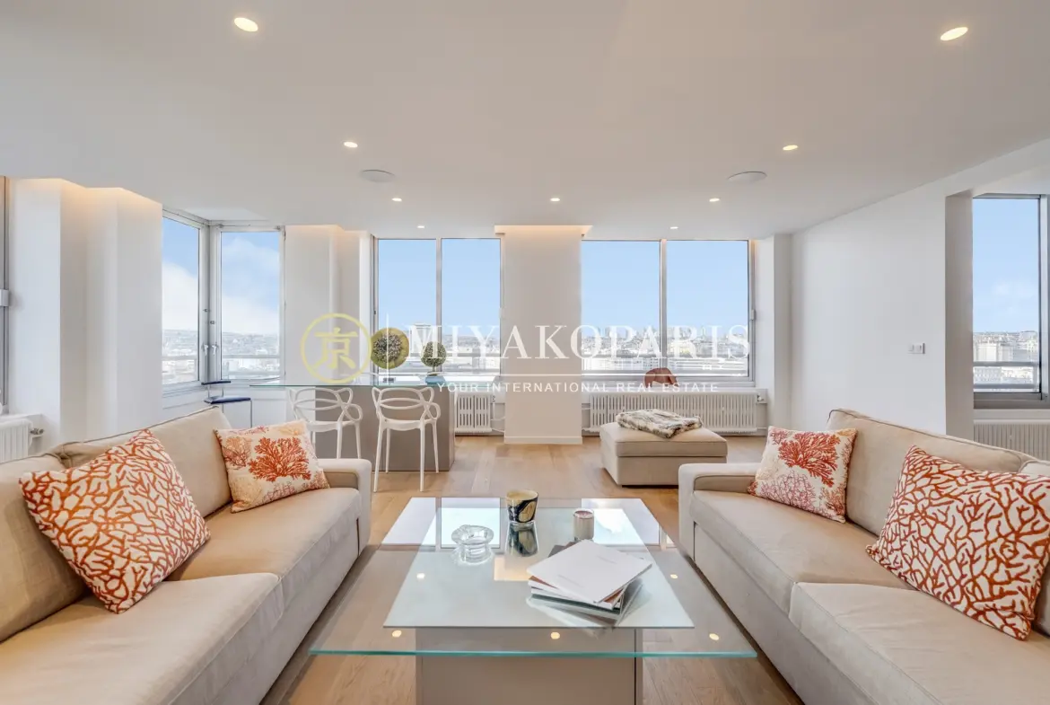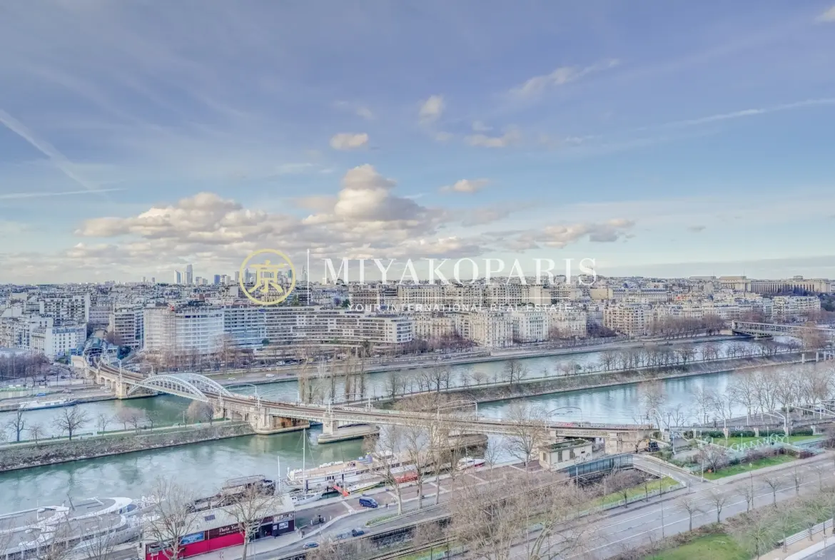 Situé au cœur du Front de Seine, cet appartement d’exception de 136,33 m² (Loi Carrez) offre une vue spectaculaire, à la fois festive et apaisante, sur la Seine et les toits de Paris. Un cadre de vie rare, où lumière, volumes généreux et confort absolu se rencontrent.