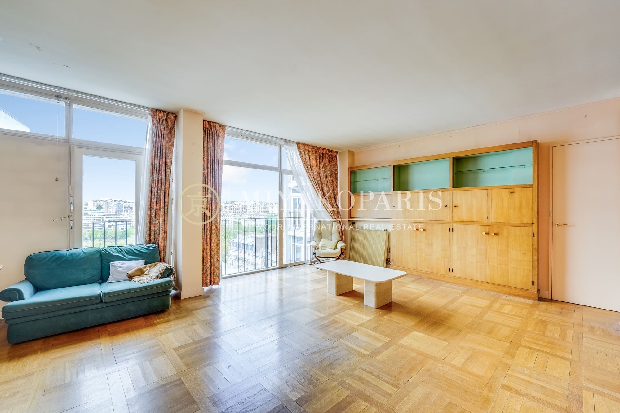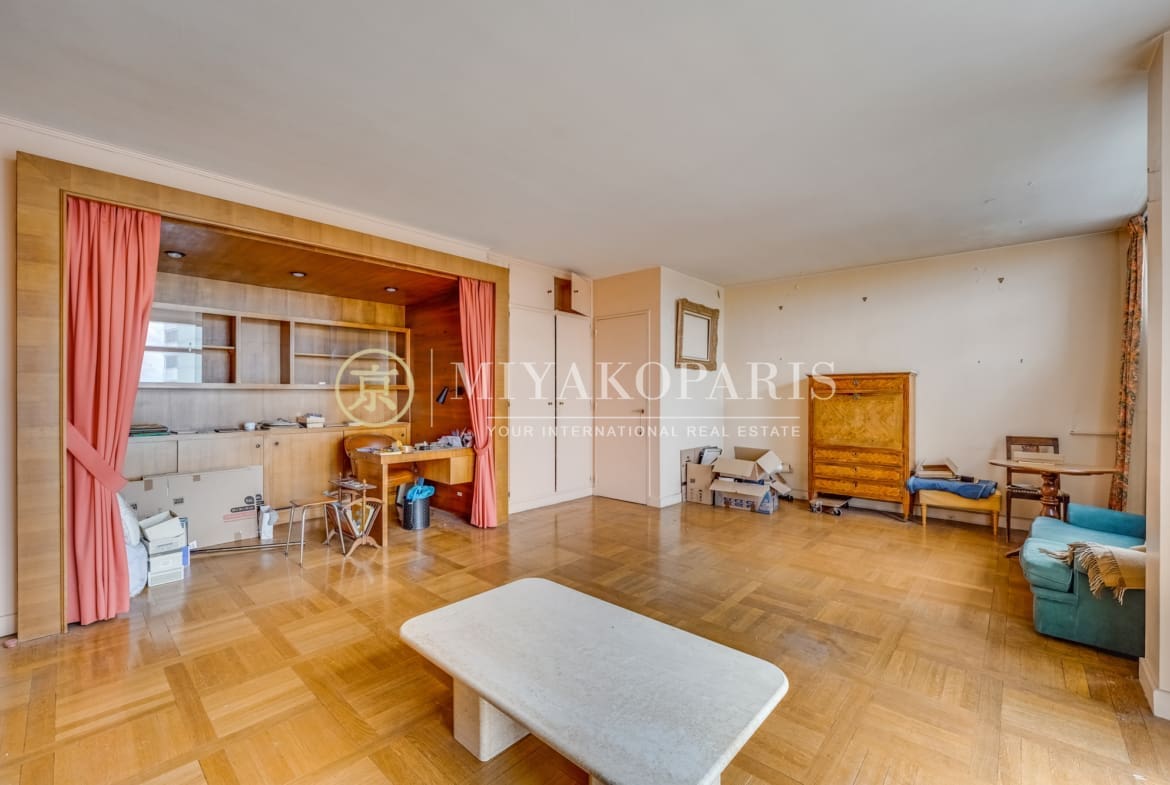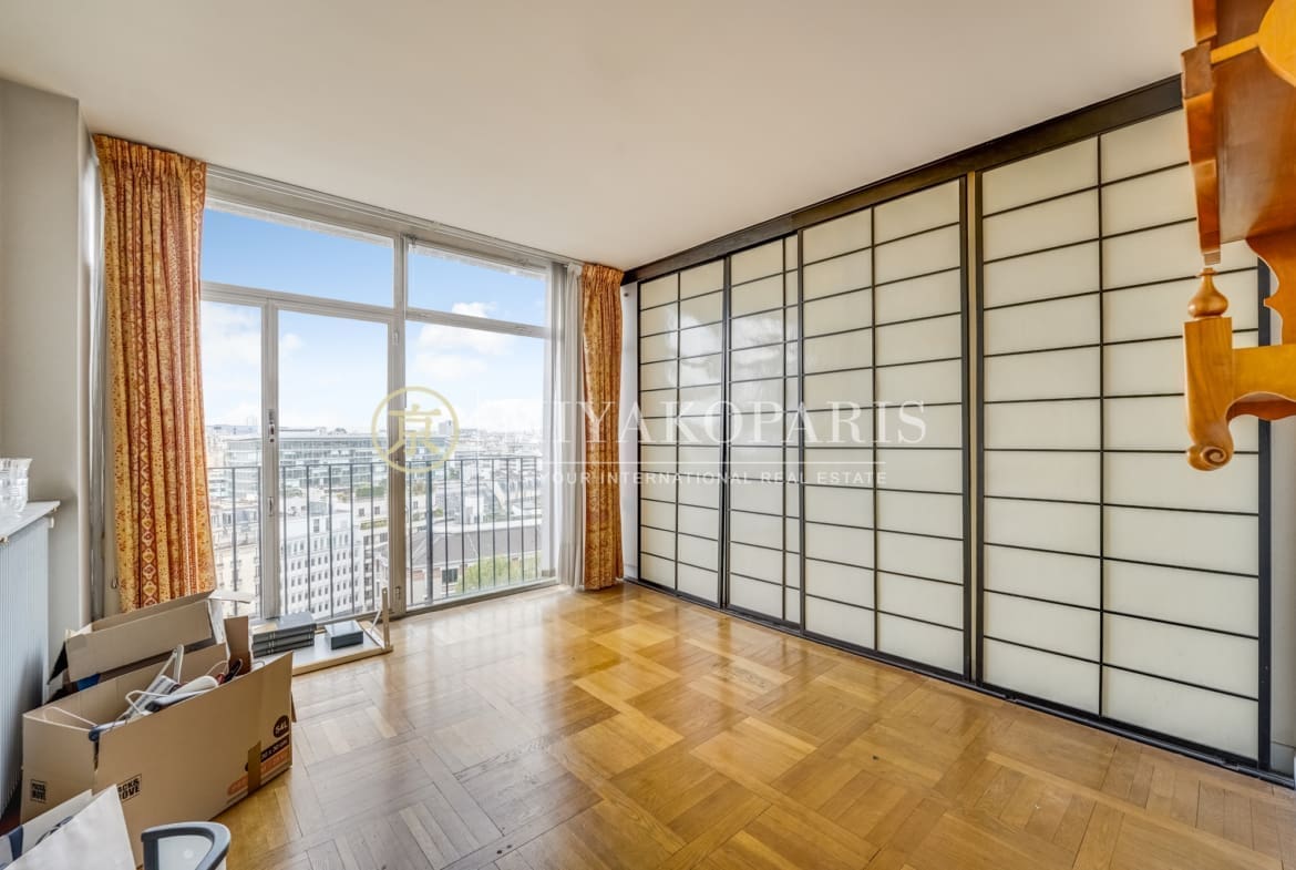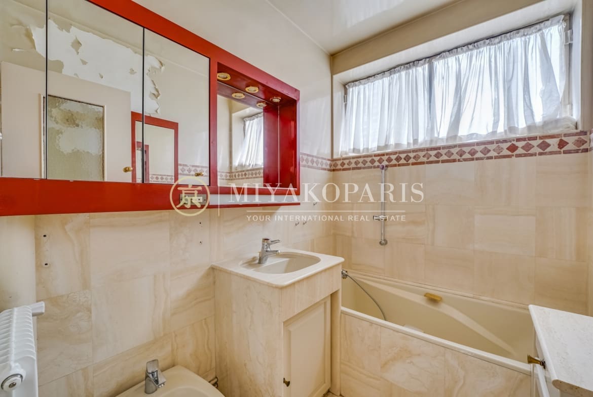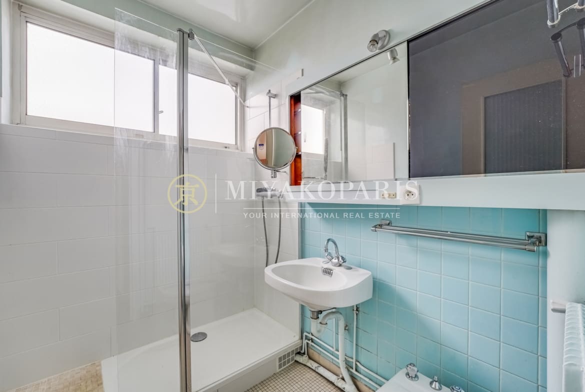 À proximité de la Tour Eiffel et du quartier de Beaugrenelle, au sein d’une copropriété sécurisée de bon standing avec gardien (interphone et vigik), en étage élevé avec ascenseur.