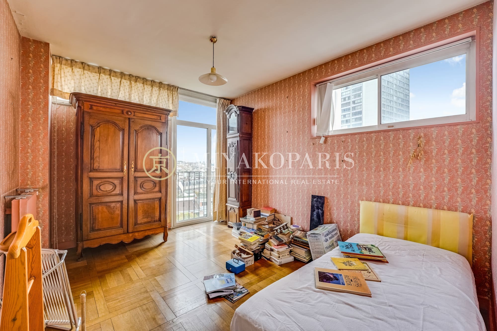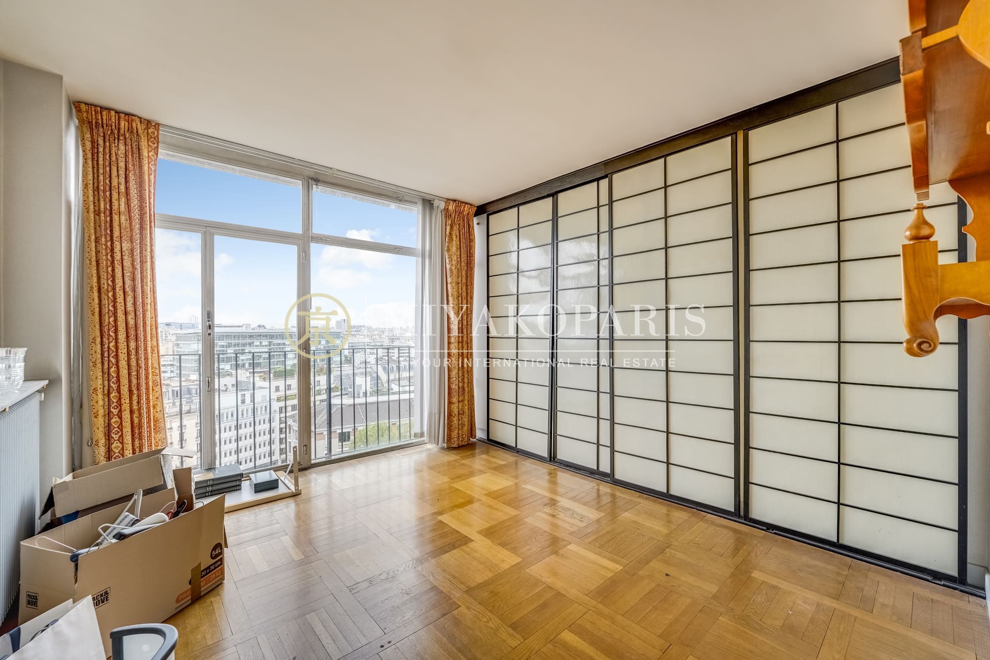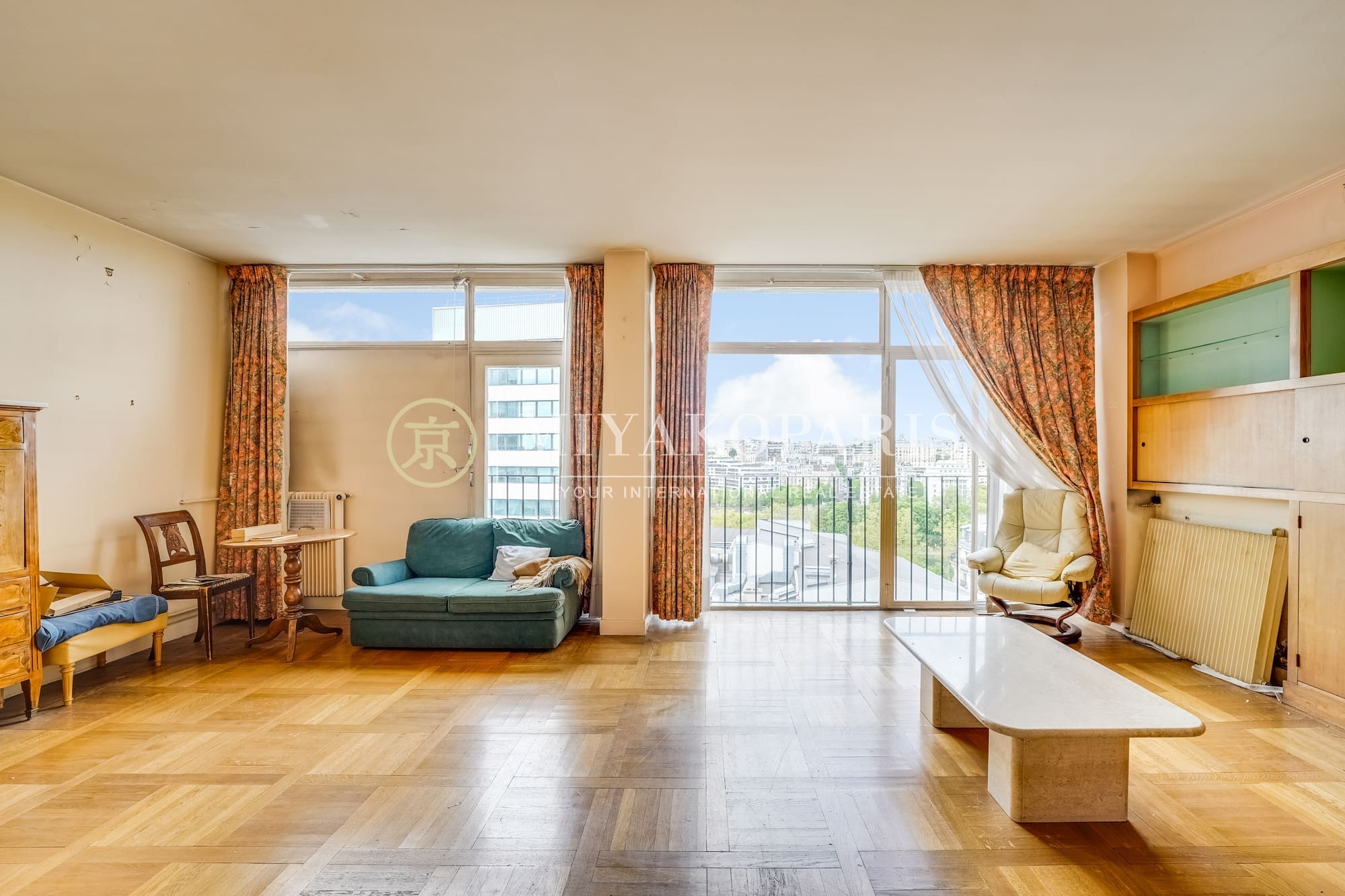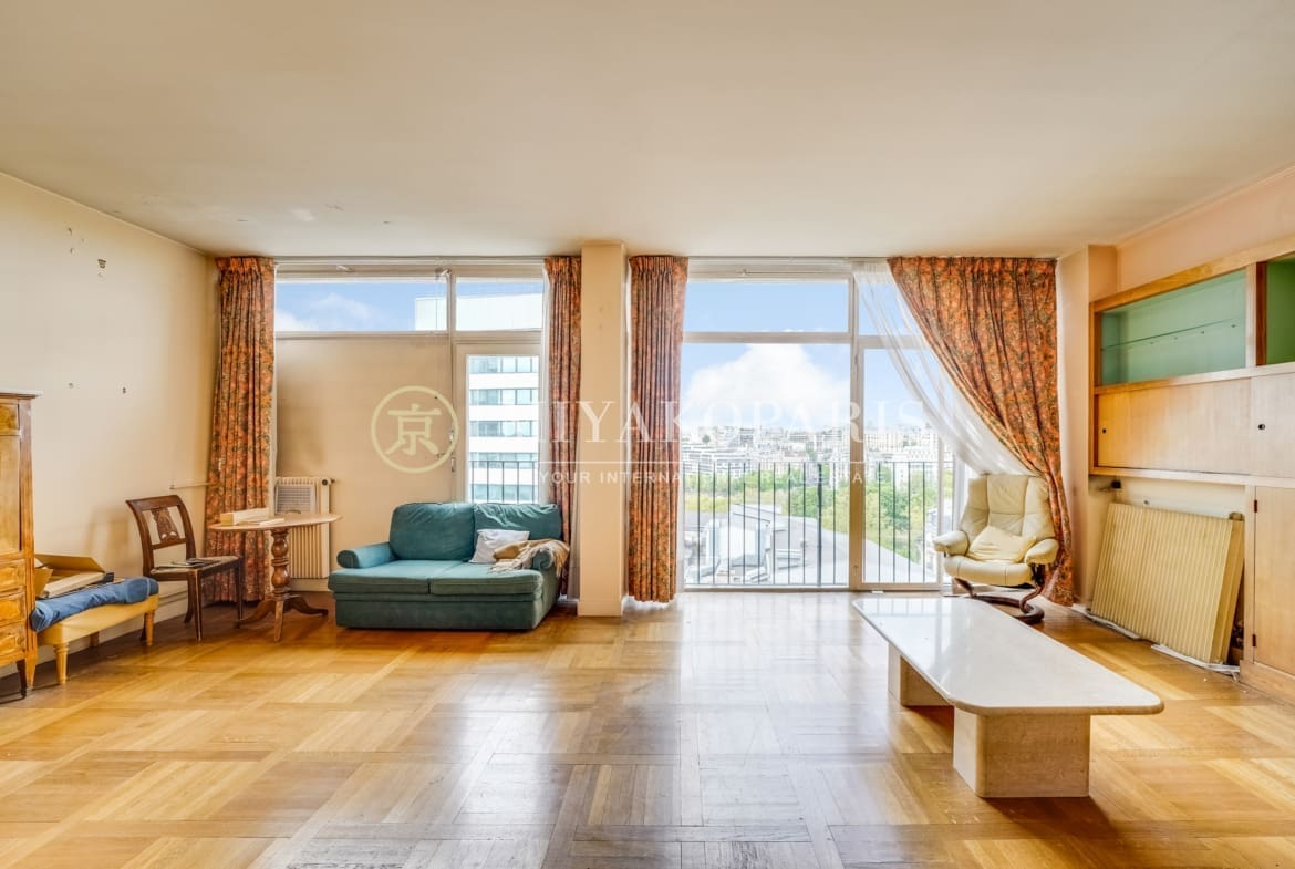 À proximité de la Tour Eiffel et du quartier de Beaugrenelle, au sein d’une copropriété sécurisée de bon standing avec gardien (interphone et vigik), en étage élevé avec ascenseur.