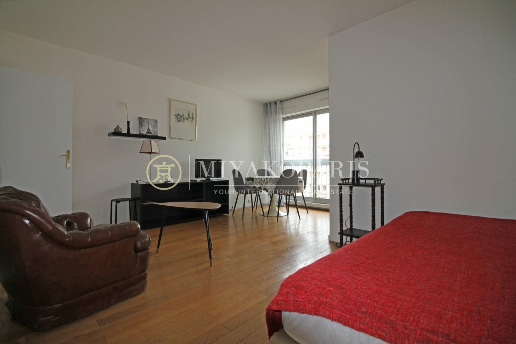Paris XV- Dans un immeuble avec jardin , ce spacieux studio se compose d’une entrée , salle de bains avec WC, pièce principale, cuisine séparée,