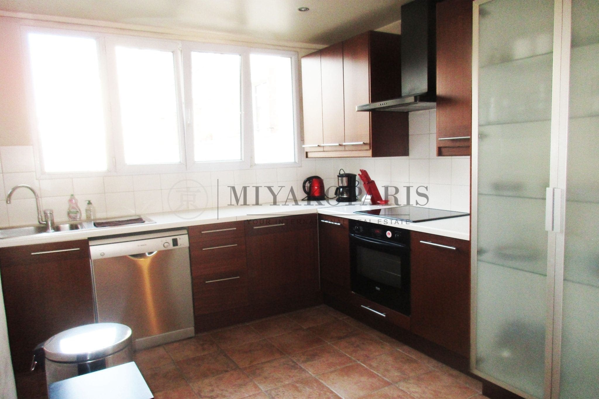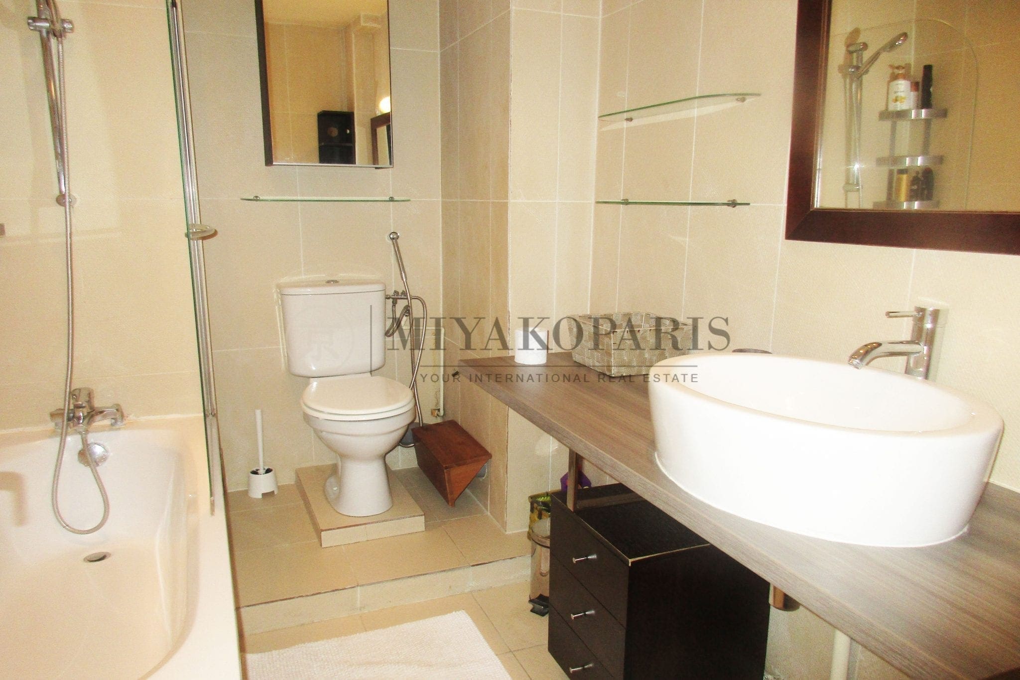 Paris XVIe– Mirabeau. Appartement en parfait état se compose d’une entrée, salon, cuisine américaine, salle de bains avec WC , WC séparés, 1 chambre .
