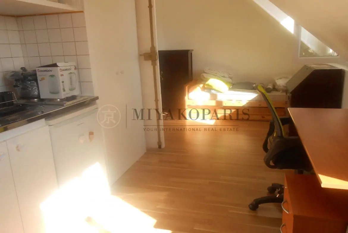 Paris XVI-Ce studio se compose d’une pièce principale , coin cuisine , salle de bains avec WC.